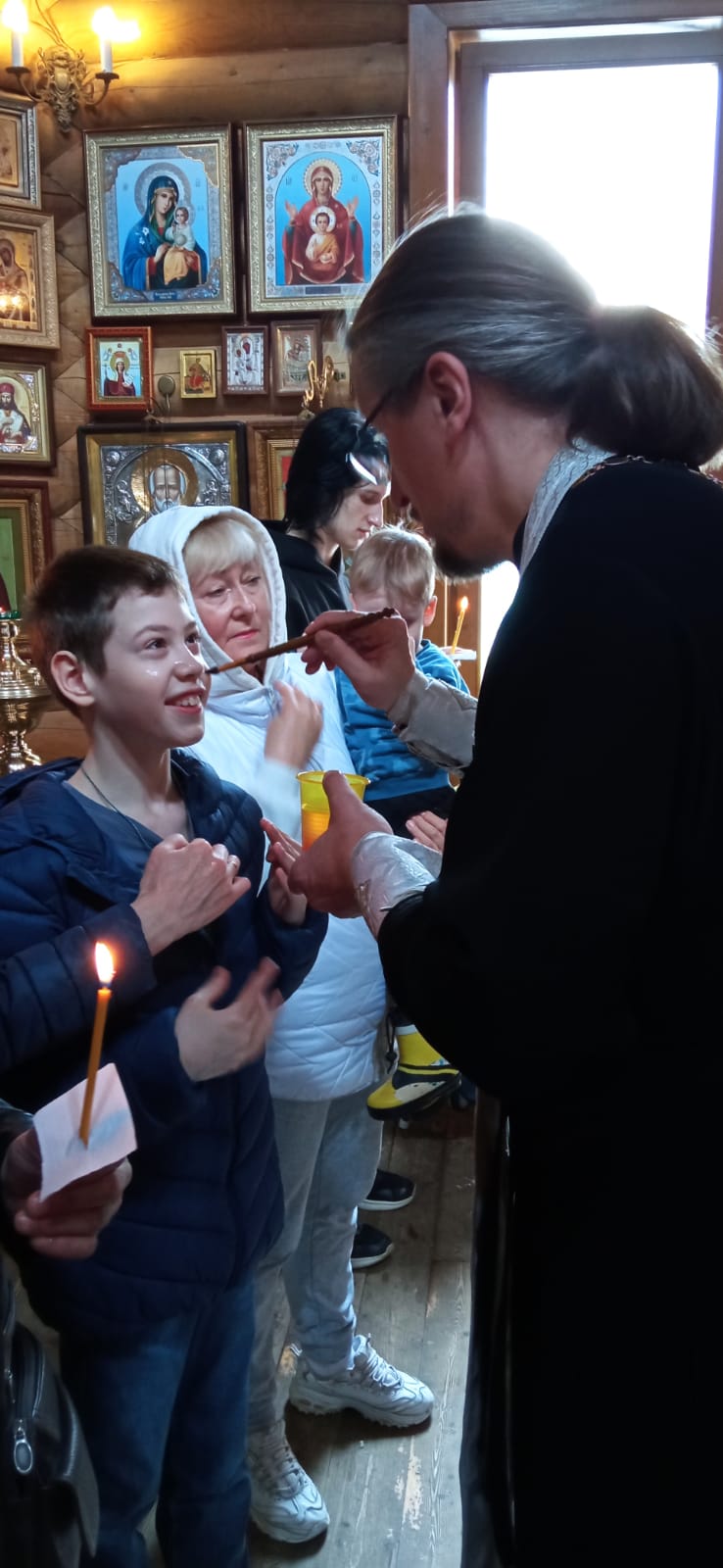 27 апреля в Никольском храме г. Подольск настоятелем храма иереем Алексием Суриковым и клириками храма было совершенно Таинство Елеосвящения для детей с ограниченными возможностями здоровья и их родителей из общественной организации «Рука об руку».