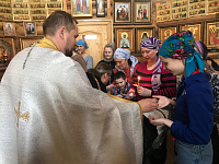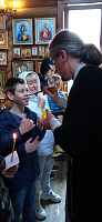По завершении Елеосвящения, ребятам были вручены подарки от прихода Никольского храма.