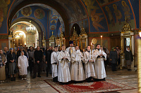 По окончании Литургии отец благочинный поблагодарил Владыку Николая за совершённое богослужение, за высокие иерархические награды и за духовные наставления накануне важного периода Великого поста – Страстной седмицы.