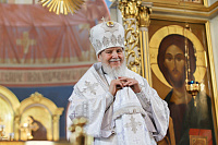 Затем Его Преосвященство обратился к сослужившему духовенству и молящимся с архипастырским словом.