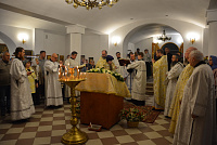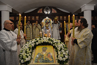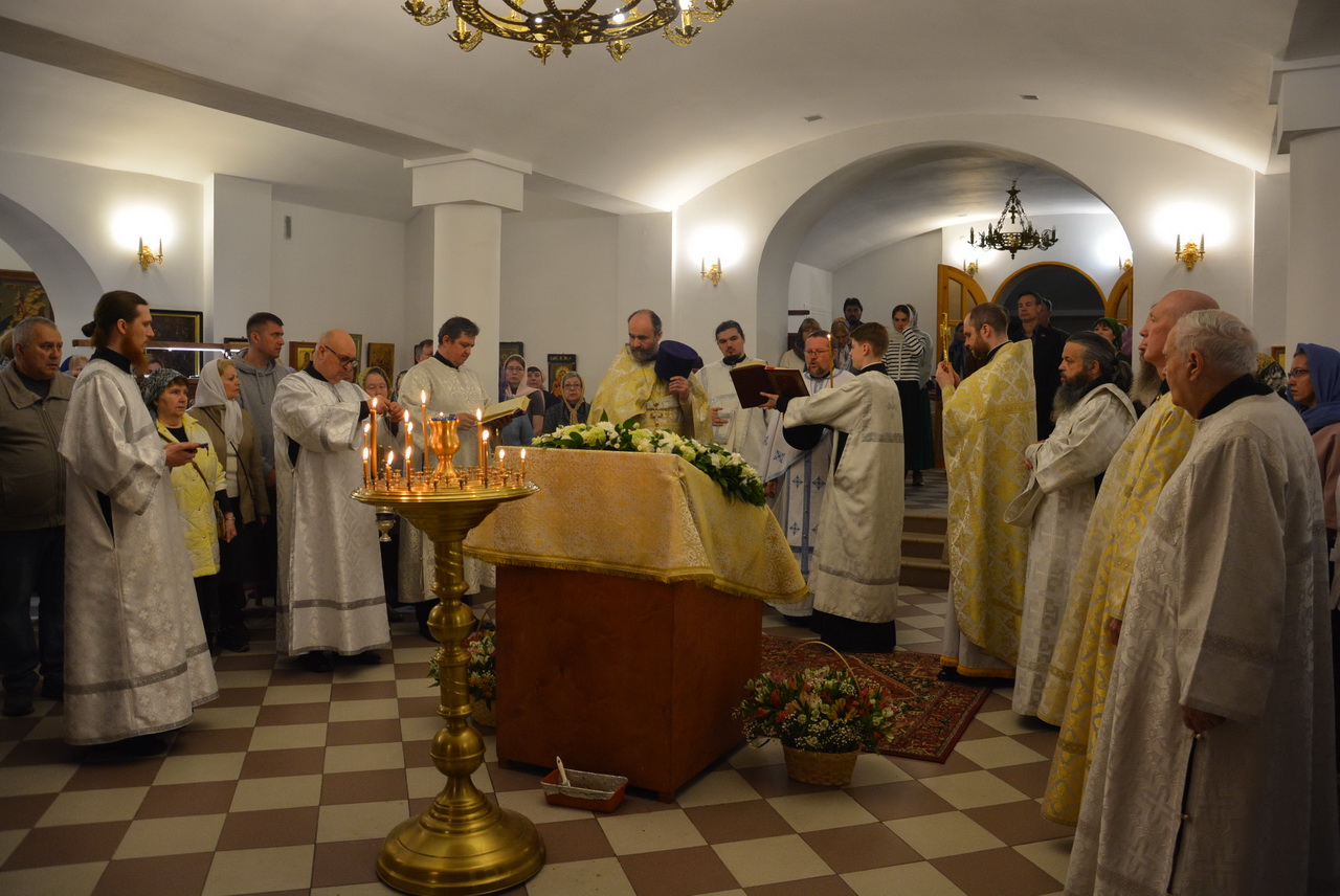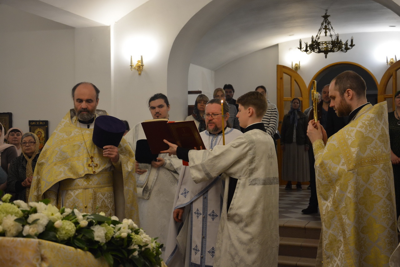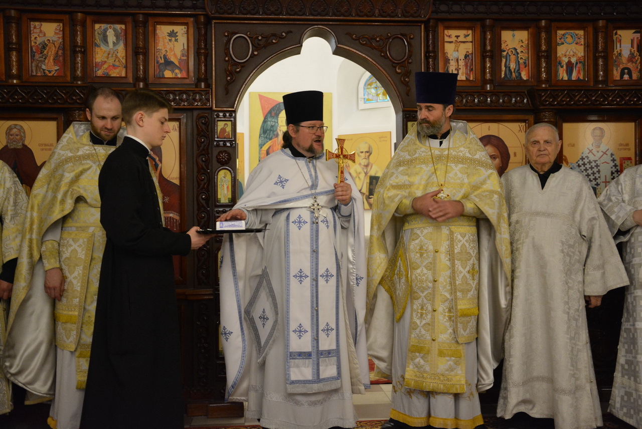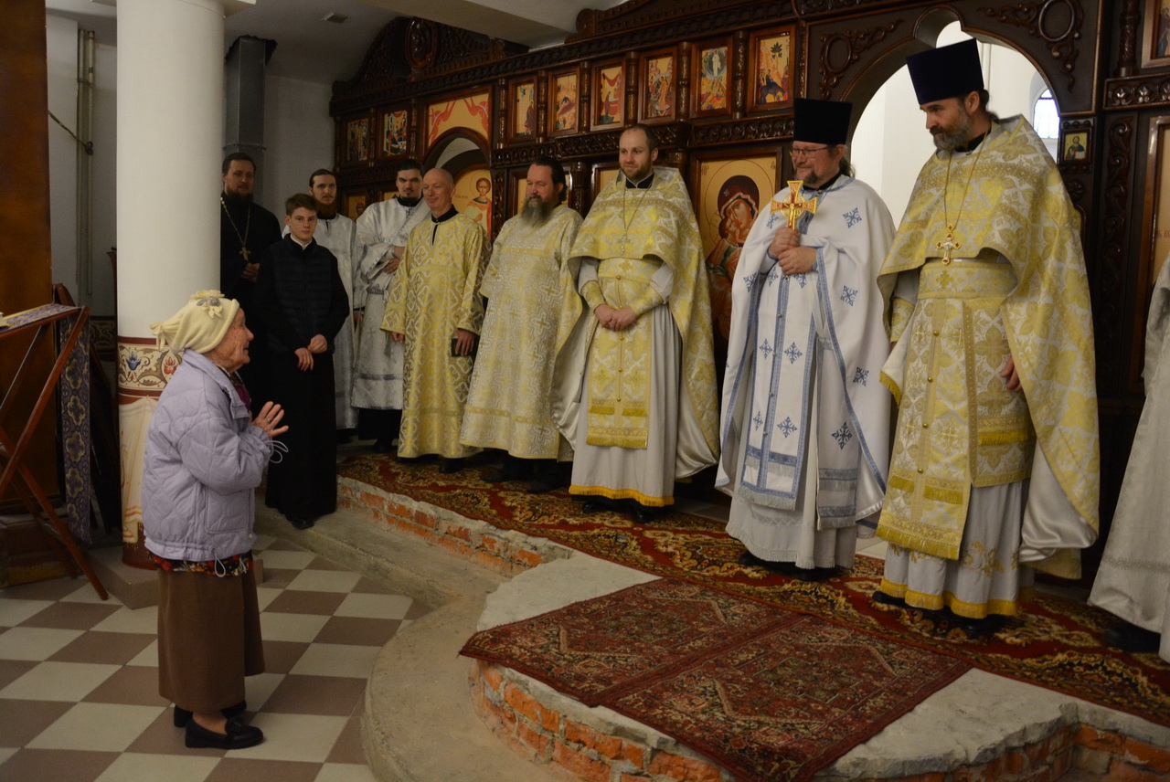 Несмотря на будний в этом году день, на службе было немало прихожан. Большинство из них сподобились причастия Святых Христовых Таин. По прочтении Святого Евангелия отец Димитрий произнес проповедь, тронувшую сердца всех людей. По окончании богослужения, отец благочинный поздравил настоятеля, клириков храма и всех прихожан с престольным праздником и подарил храму ладан, а настоятель храма протоиерей Георгий Болгарский преподнёс в ответ Святую Плащаницу. От лица всех прихожан гостей поблагодарила за прекрасную службу старейшая прихожанка храма Надежда Наумовна Манькина.