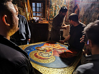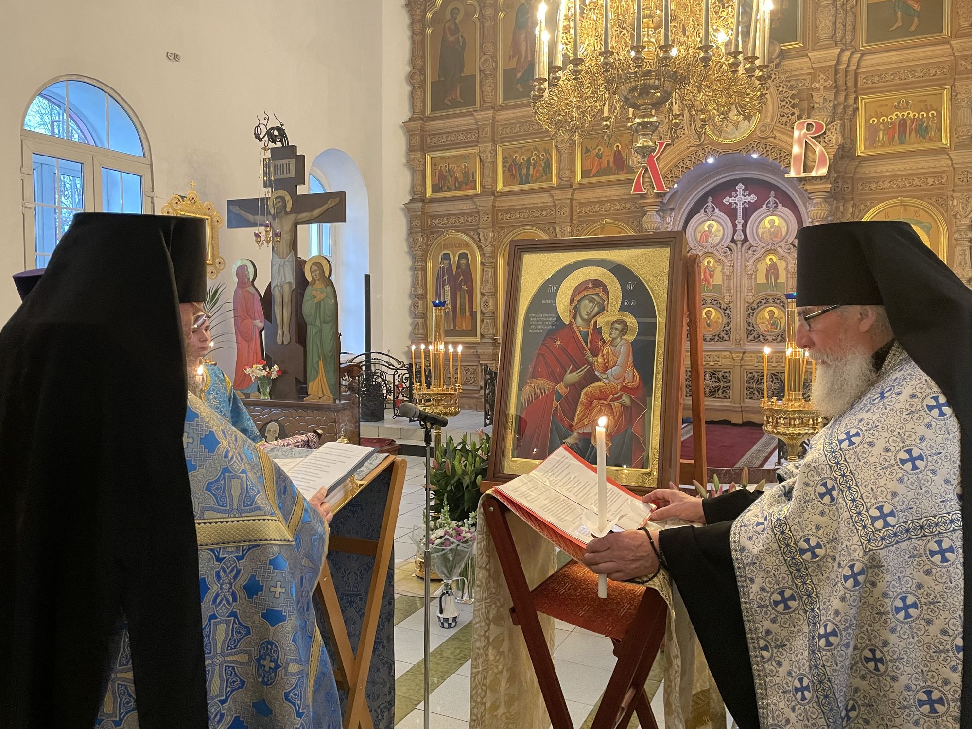 По окончании Божественной литургии с крестным ходом встретили образ Пресвятой Богородицы у врат монастыря и с молебным пением внесли в храм, где был совершён акафист, после чего игумен Евмений поздравил матушку Капитолину, сестёр и прихожан с великой милостью Божией.