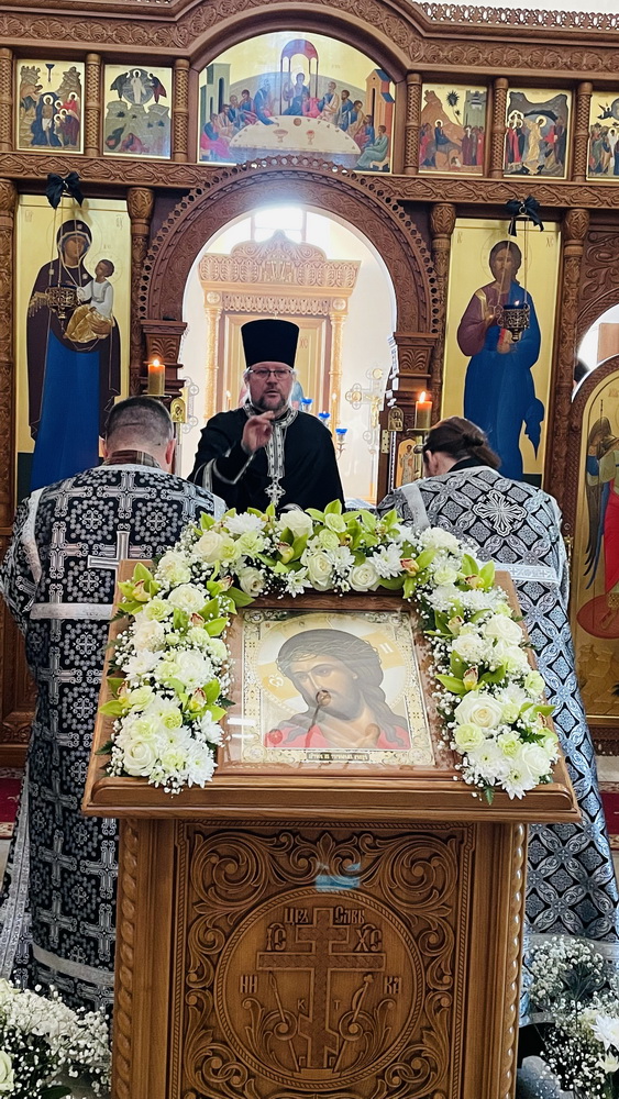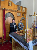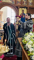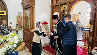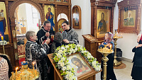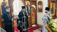 По завершении Божественной Литургии о. Димитрий поздравил прихожан с праздником и обратился ко всем с приветствием и пастырским словом наставления, и преподнёс в дар храму ладан. В ответном слове настоятель прихода и прихожане сердечно поблагодарили отца Димитрия и преподнесли в знак признательности букет цветов.