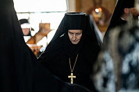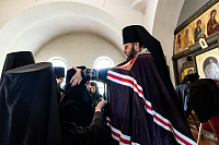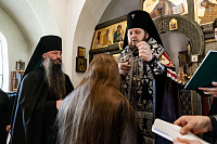 После совершения пострига архиепископ Аксий обратился к новоначальным монахине и инокиням с напутственным словом.