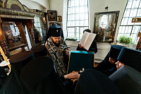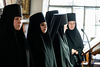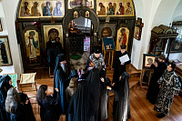29 апреля в Серафимовском храме Серафимо-Знаменского скита г.о. Домодедово архиепископ Подольский и Люберецкий Аксий совершил иноческие постриги послушниц обители: Людмилы Мартыненко, Марии Цветковой, Фотинии Ратушняк, Ларисы Меркушиной, Любови Тамазовой.