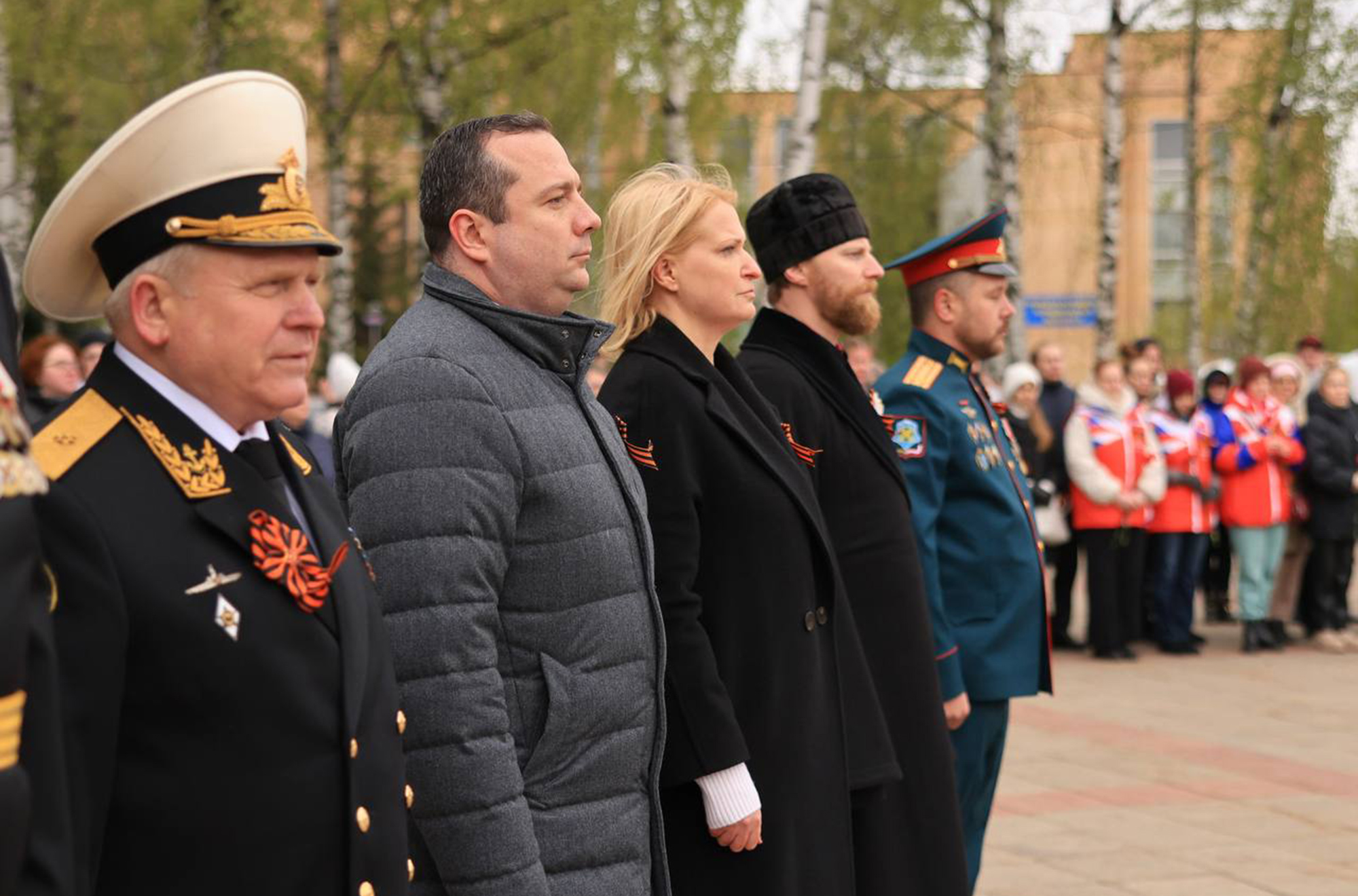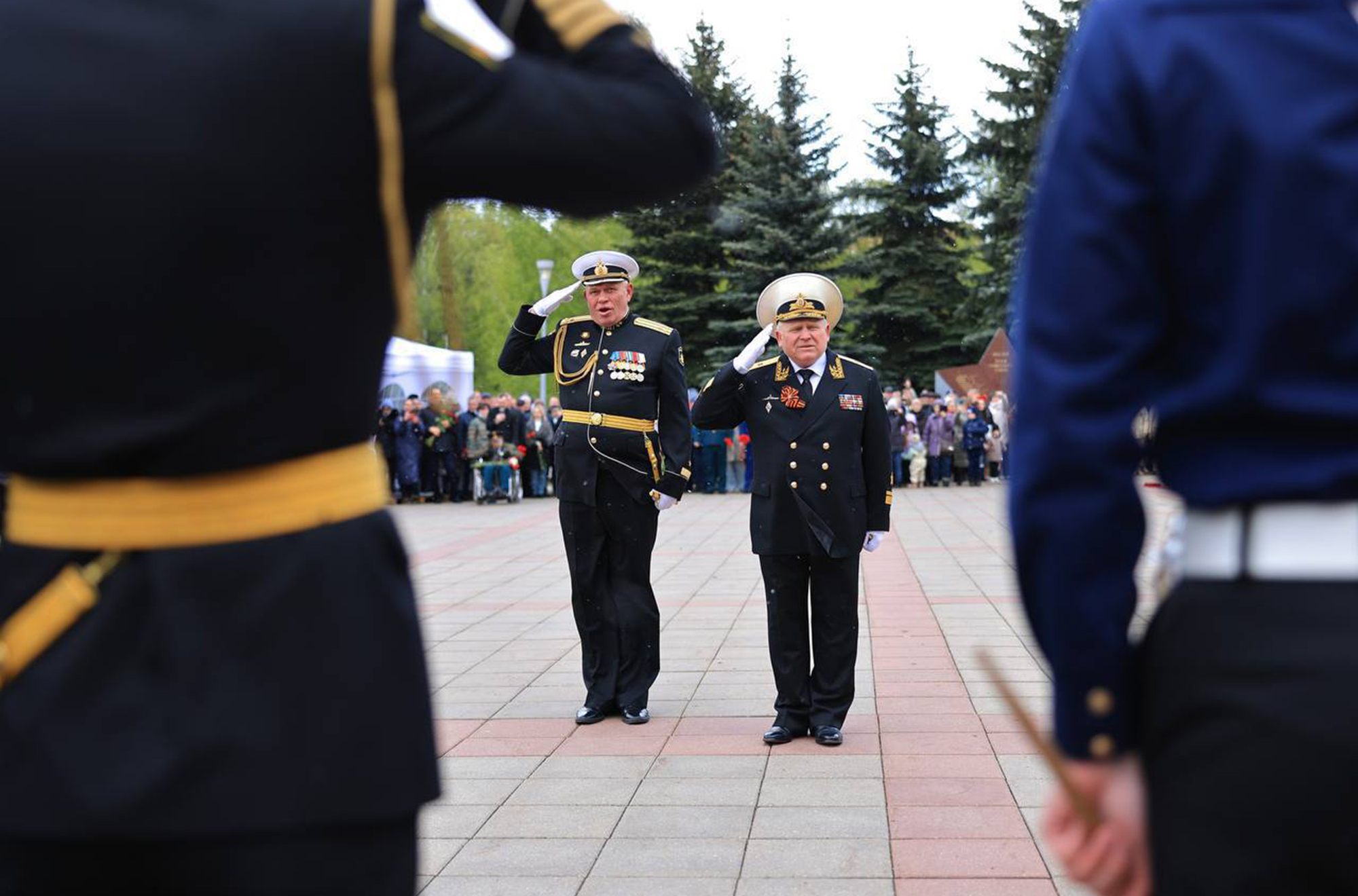 Командовал расчетом начальник Морского Корпуса Петра Великого капитан 1 ранга Олег Игнасюк, а принял парад председатель Совета ветеранов Королёва, контр-адмирал Владимир Ковтуненко.