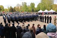 После Мемориала Славы 240 курсантов прошествовали по центральным улицам города с патриотическими песнями военных лет.