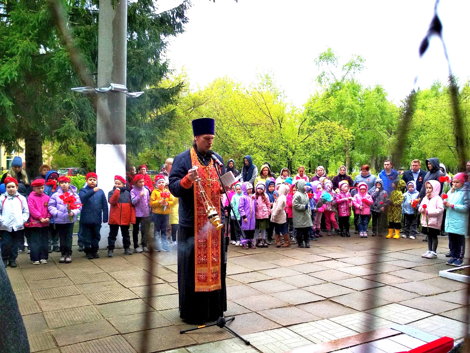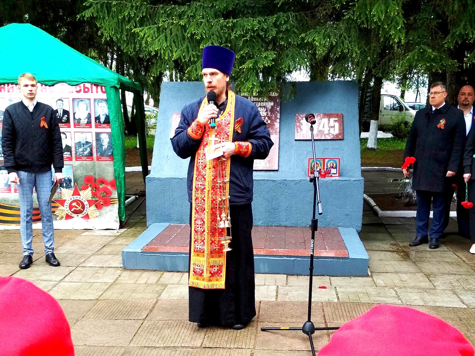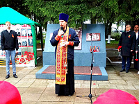 7 мая настоятель Казанского храма поселка Радужный иерей Александр Кузнецов принял участие в митинге у поселкового воинского мемориала, где отслужил заупокойную литию и обратился к собравшимся с поздравительным словом.