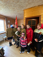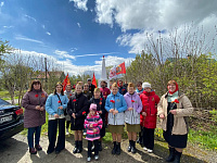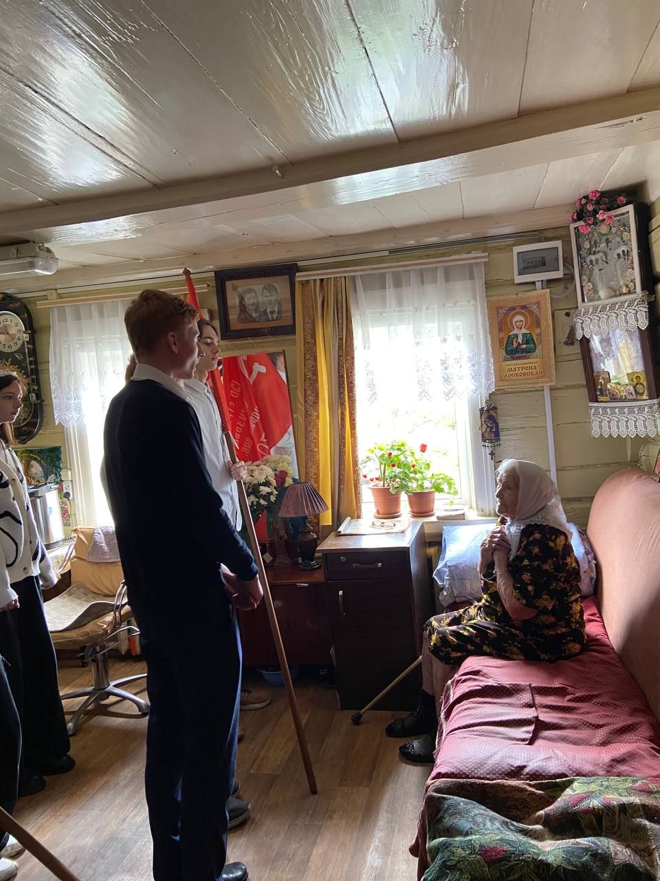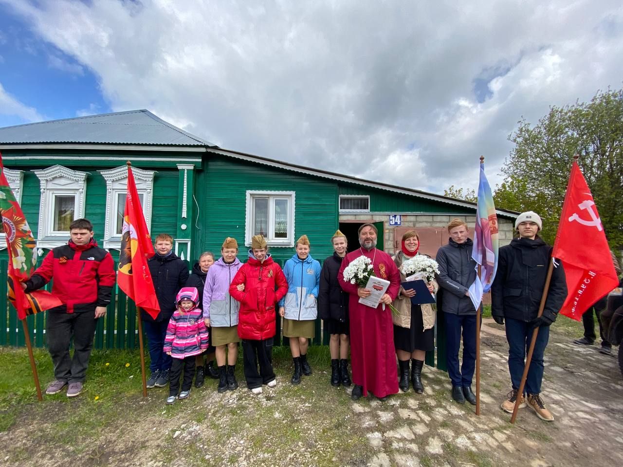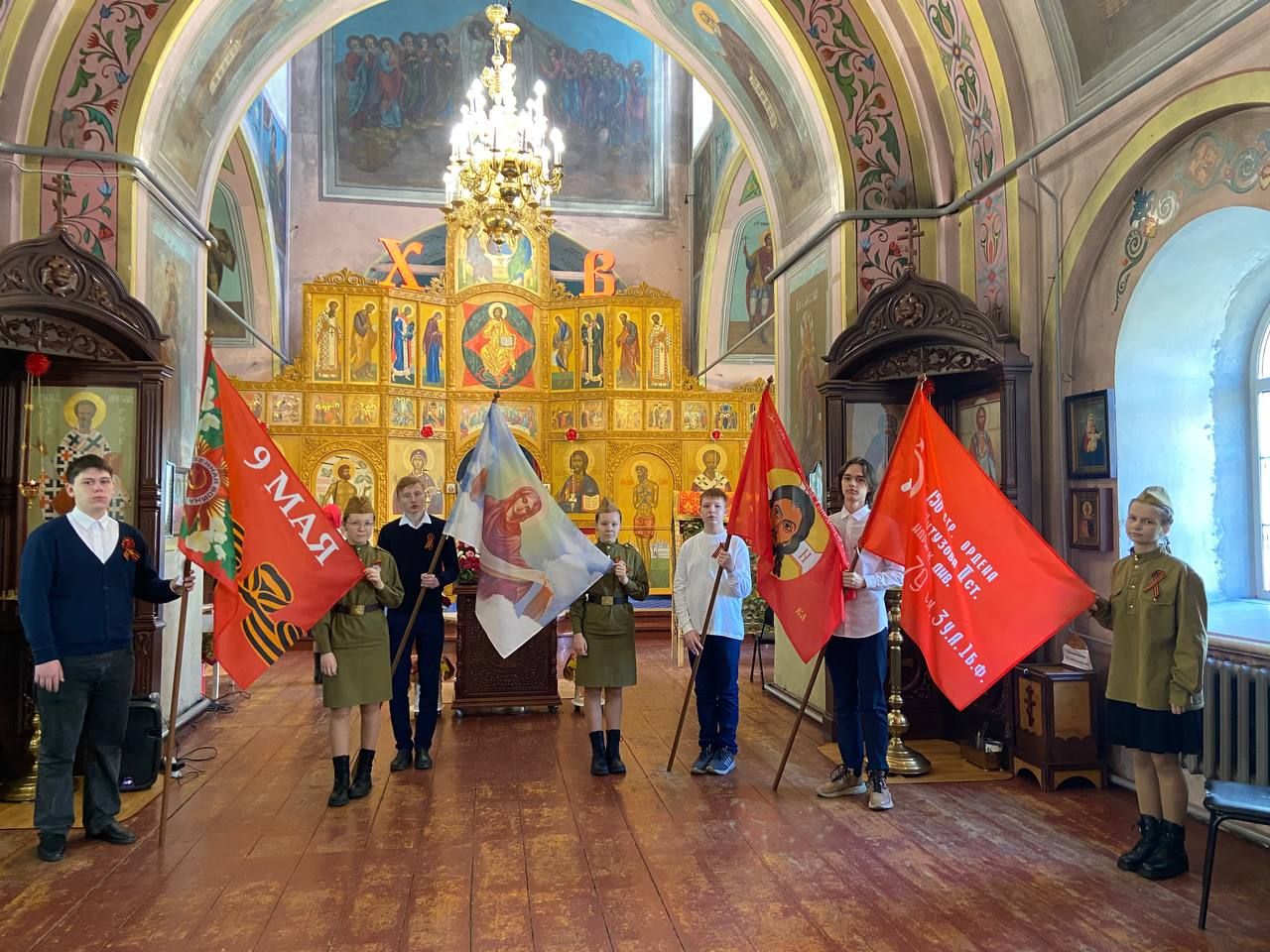 9 мая 2024 года по окончании богослужения учащиеся православного молодёжного клуба "Скрижаль" при Знаменском храме д.Алёшино выступили перед прихожанами с музыкально-литературной композицией "Вам не отнять у нас Победу!". После выступления ребята вместе с родителями и настоятелем храма иереем Романом Теребилкиным совершили шествие к памятнику погибшим в годы Великой Отечественной войны землякам в д. Кудиновская и с пением пасхального тропаря возложили цветы. После этого стартовал праздничный автопробег, участники которого также возложили цветы к памятнику в д. Федуловская. Далее автопробег добрался в д. Алёшино. Ребята и взрослые поздравили с Днём Победы двух прихожанок Знаменского храма: Екатерину Ивановну, работавшую в тылу в годы войны, и Аллу Семёновну, ребёнком пережившую военные годы. В домах женщин звучали поздравления, стихи и песни. Завершился автопробег в Знаменском храме д. Алёшино. Ярким и насыщенным оказался Светлый четверг, вместивший в себя пасхальную радость и торжество Дня Победы!