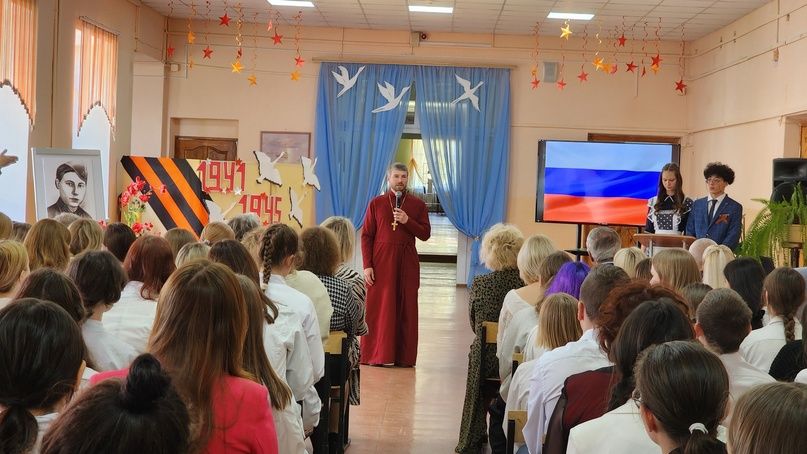 8 мая 2024 года иерей Сергий Ершов посетил праздничное мероприятие в связи с открытием ко дню Победы парты героя Советского Союза Самсоновой Зинаиды Александровны в МОУ Средняя общеобразовательная школа № 14.