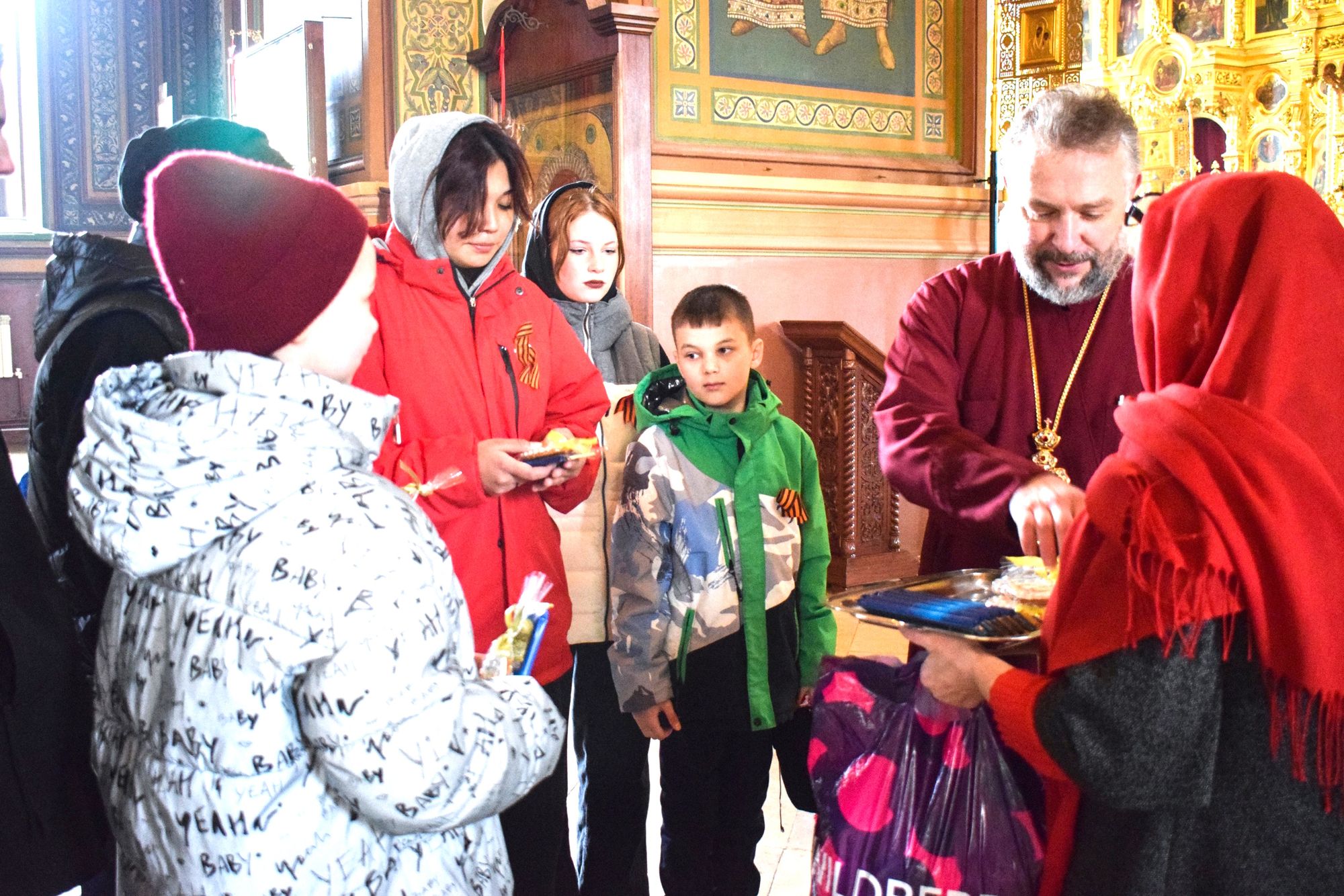 В ходе экскурсии отец Олег поздравил детей с праздником Пасхи и вручил сладкие подарки.