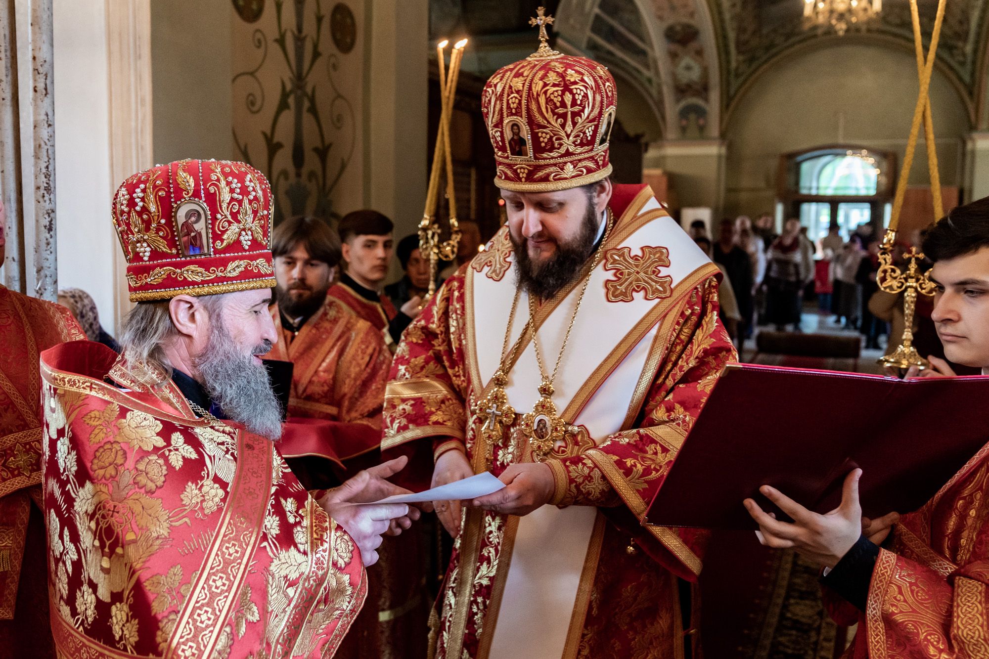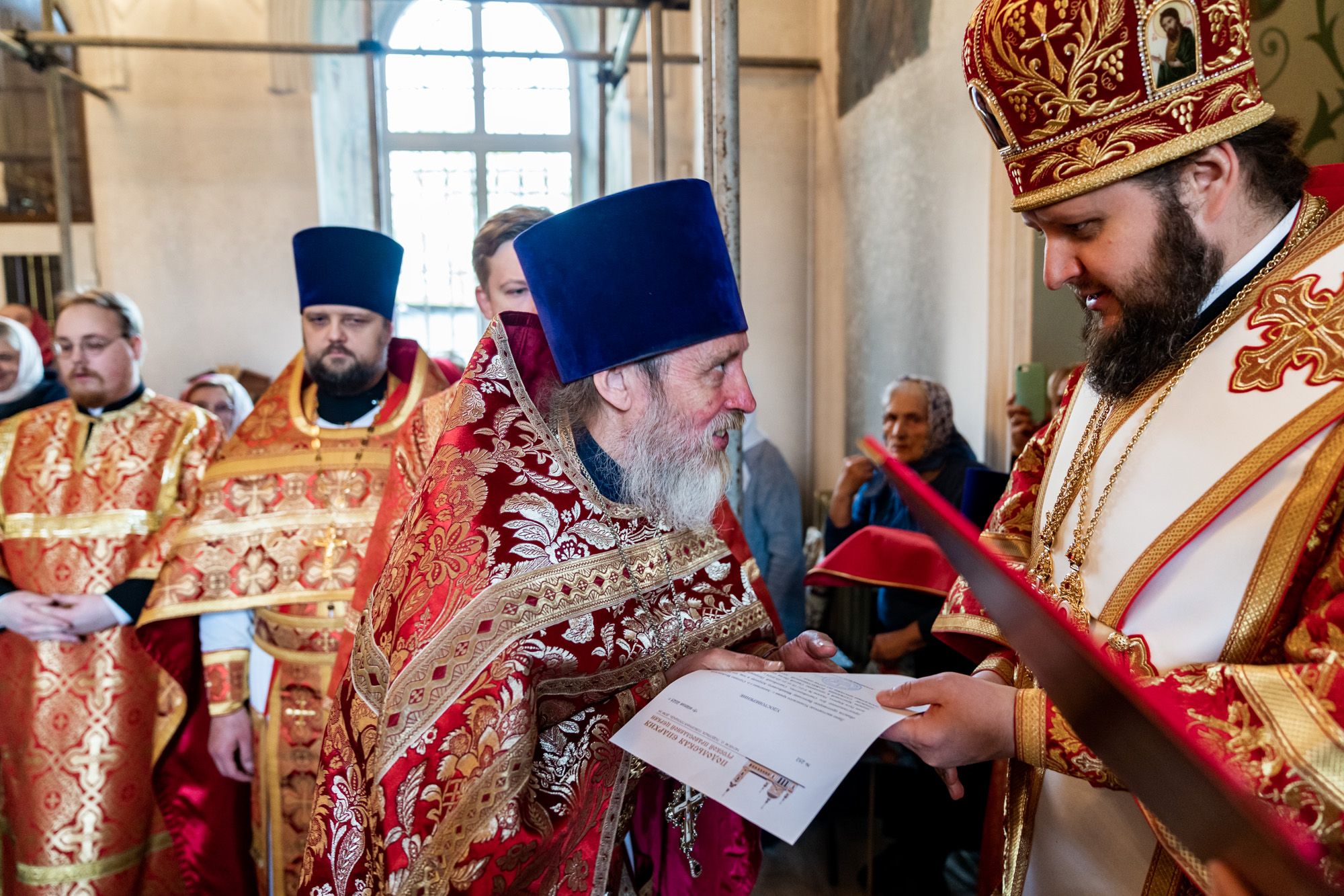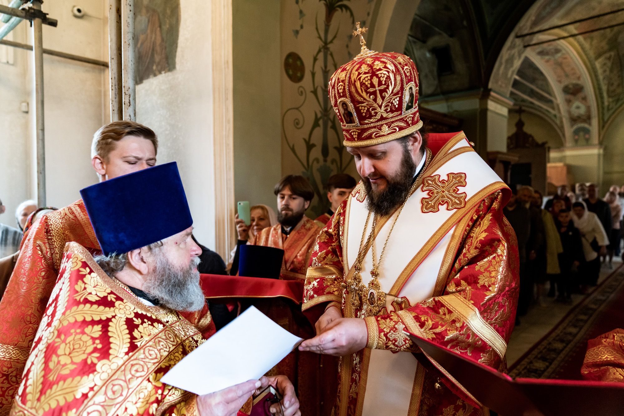 На малом входе владыка Аксий вручил клирикам Малинского благочиния богослужебно-иерархические награды к празднику Святой Пасхи.