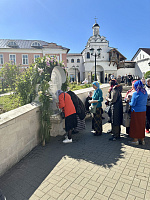 Затем Коломенские паломники посетили Высоцкий ставропигиальный мужской монастырь, где был совершен молебен у иконы Божией Матери «Неупеваемая чаша», память которой совершается в этот день. Богомольцы все вместе особо помолились Пресвятой Богородицы о близких, страдающих недугом пьянства, наркомании и игромании. После чего паломники направились в Введенский Владычный женский монастырь, основанный в 1360 году митрополитом Алексием, святителем Московским и всея России чудотворцем. Гости из Коломны помолились у многочисленных святынь древнейшей обители серпуховской земли, а затем направились в последний пункт путешествия - святой источник в честь иконы Божией Матери «Неупиваемая Чаша» в селе Богдановка г.о. Коломна, где для них было организовано чаепитие.