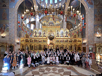 В качестве музыкального приношения мастерицам был предложен концерт детского вокально-хорового коллектива «Созвездие детства» (руководитель — В.В. Упрямова, концертмейстер — А.В. Кривцова), по окончании которого в актовом зале храма состоялось чаепитие. Были подведены итоги благотворительной лотереи, средства от которой были направлены на нужды мастерской.