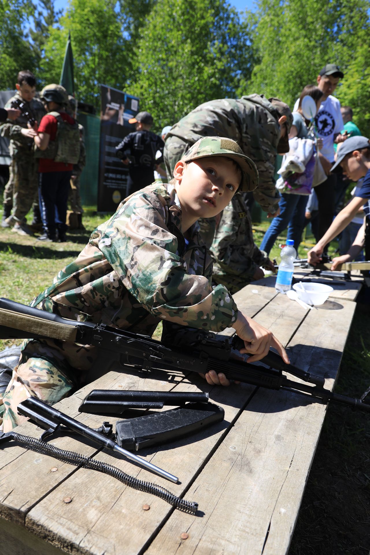 На площадке Воскресенского отделения «Русской общины» можно было попробовать свои силы в армрестлинге. А на площадке ВПК «Шторм» прошли учебные классы - как одеть солдата, спортивное метание ножей, безопасное обращение с оружием, разборка сборка автомата.