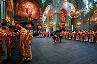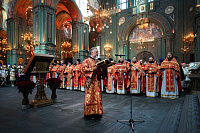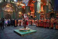 Его Святейшеству сослужили и молились за богослужением клирики епархий, входящих в состав Московской митрополии: