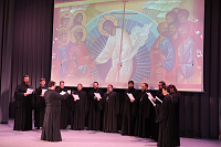Гала-концерт начался пением хора духовенства Балашихинского благочиния (регент – Д.К. Кравцов), после чего Владыка Николай обратился к присутствующим с архипастырским словом и вручил почётные грамоты победителям конкурса «Православная книга своими руками».