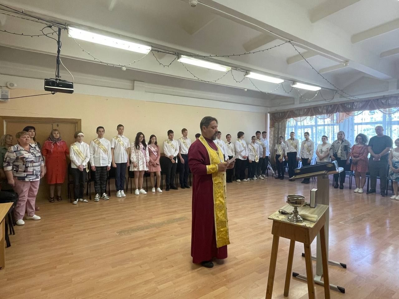 24 мая 2024 года настоятель Знаменского храма д. Алёшино иерей Роман Теребилкин принял участие в торжественной линейке, посвящённой празднику Последнего звонка в МОУ СОШ №13 в пос. Новый. Отец Роман поздравил выпускников с окончанием учебного года и с Днём славянской письменности и культуры и пожелал помощи Божией на жизненном пути. По окончании линейки в актовом зале школы отец Роман отслужил молебен перед экзаменами для учащихся и родителей и напутствовал выпускников пастырским словом.