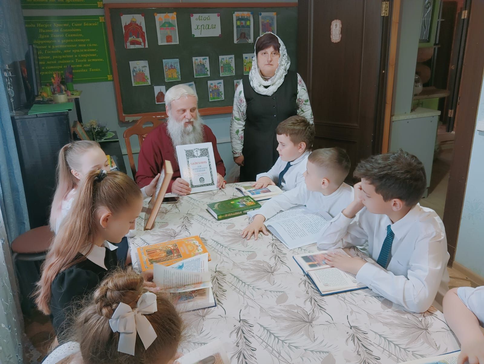 26 мая 2024 года в Воскресной школе "Горлица" при Введенском храме д. Рыжево отметили День славянской письменности и культуры интересными и весёлыми мероприятиями: ребята познакомились с буквами славянской азбуки, водили хороводы, играли в русские народные игры, оформили тематическую книжную выставку.