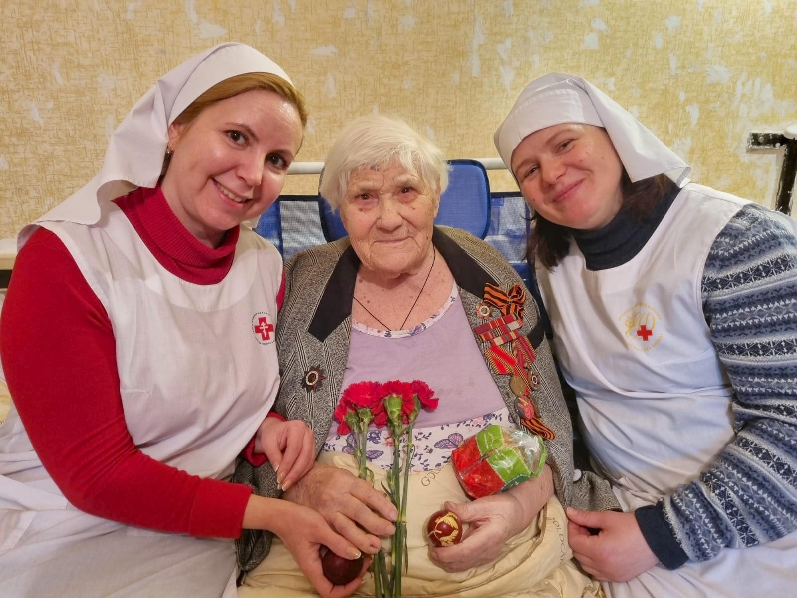 26 мая сестры группы милосердия Троицкого храма города Раменское и сестры милосердия Елисаветинского филиала больницы святителя Алексия поздравляли подопечных ветеранов с Днем Победы и со Светлым Христовым Воскресением.