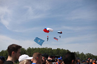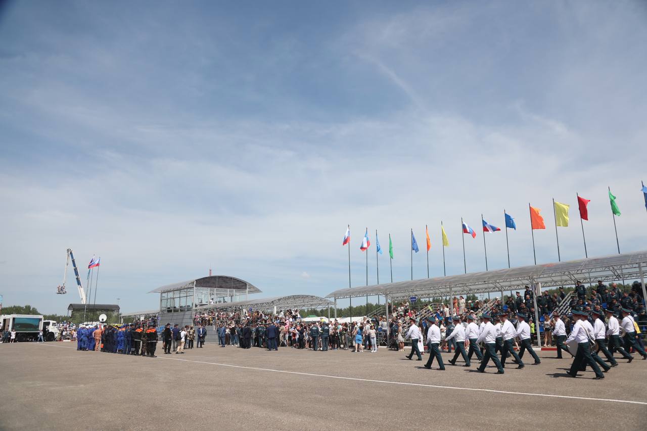 Отряды МЧС и пожарной службы продемонстрировали современные возможности по спасению оказавшихся в опасности людей и тушению очагов возгорания с воздуха. Показали, как с применением спецоборудования и техники, в том числе вертолетов и робототехнических комплексов можно спасти людей, условно выбежавших на балкон горящей квартиры.