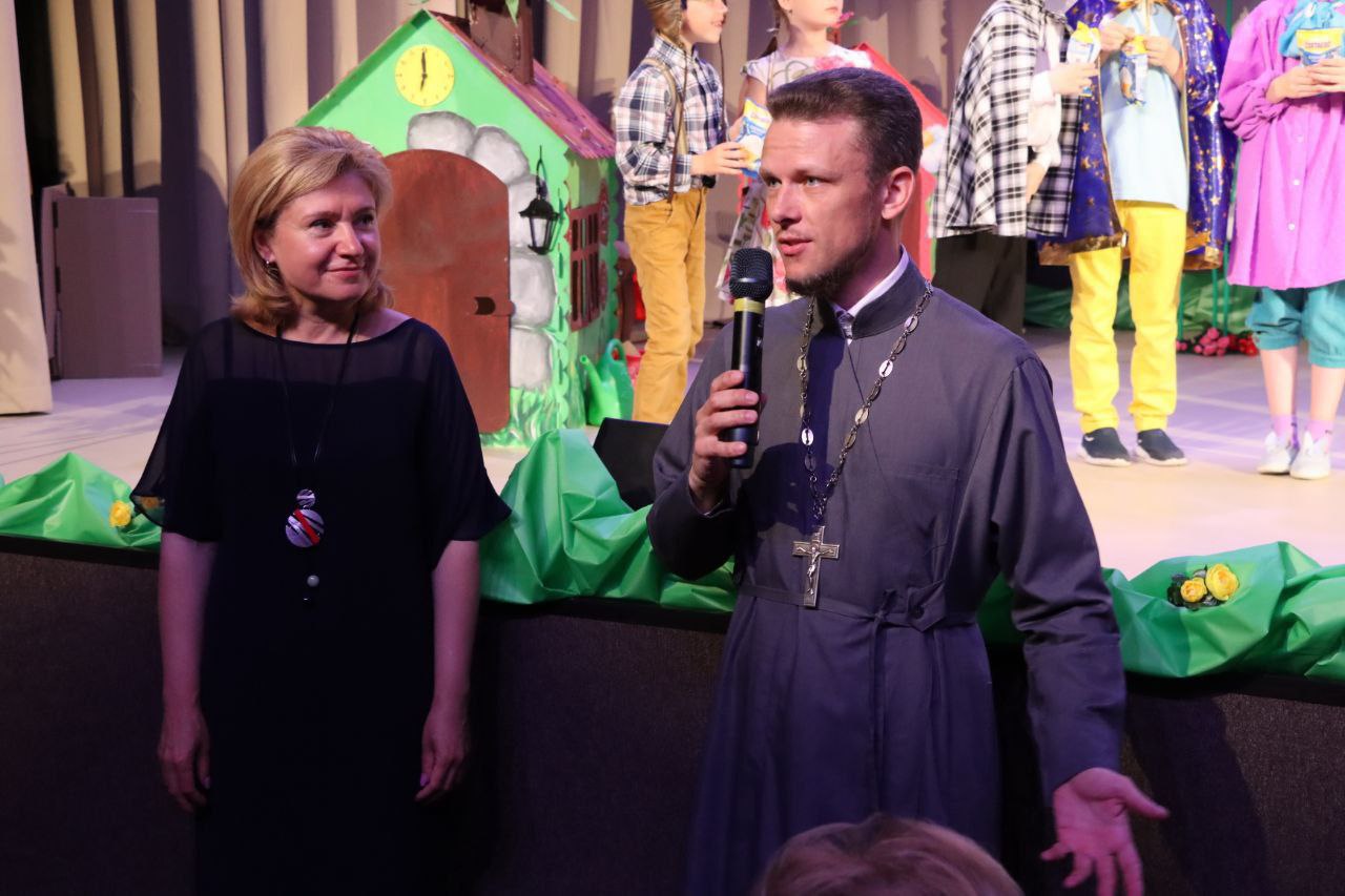 Перед началом показа с приветственными и поздравительными словами к детям и их родителям обратились заместитель главы г.о. Бронницы Наталья Владимировна Меньшикова, депутат городского Совета депутатов Сергей Анатольевич Дуенин, начальник сектора по делам несовершеннолетних и защите их прав Лариса Васильевна Санжаровская, благочинный 1-го Бронницкого округа иерей Сергий Себелев, ответственный по социальной работе в благочинии иерей Александр Мучнов.