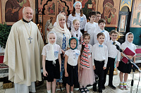 2 июня паломники помолились на Божественной литургии в храме Казанской иконы Божией Матери, причастились, а после службы выступили перед прихожанами с концертной программой. Настоятель храма протоиерей Владимир Титов и прихожане храма тепло благодарили ребят. Далее состоялось чаепитие.