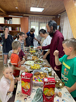 Прихожане храма сыграли на гитаре для ребят походные мелодии, спели веселые песни из любимых мультфильмов, не обошлось и без серьезных композиций. Дети также продемонстрировали свои музыкальные и спортивные таланты, играли в веселые старты, соревновались в ловкости и скорости. Завершилось мероприятие чаепитием.
