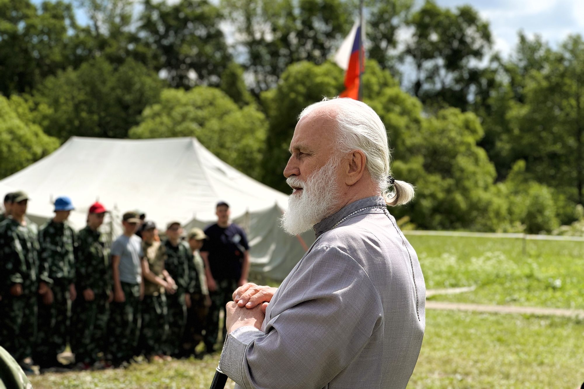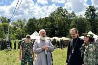 8 июня 2024 года митрополит Крутицкий и Коломенский Павел в сопровождении председателя Отдела по миссионерской работе и делам молодёжи иерея Иоанна Бакушкина и благочинного 1-го Коломенского округа протоиерея Алексия Виноградова посетил летний военно-спортивный палаточный партизанский лагерь, ежегодно организуемый военно-патриотическим клубом «Пересвет». Владыка ознакомился с материально-технической базой лагеря и пообщался с организаторами смены.