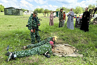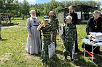 После этого владыка Павел поприсутствовал на соревнованиях и вручил кубок лучшему отряду партизанского лагеря, а всем ребятам - наборы для рисования картин. Также во время посещения лагеря Владыка пообщался с воспитанниками лагеря, ответил на их вопросы. В завершение визита всем ребятам было передано мороженое к обеду.