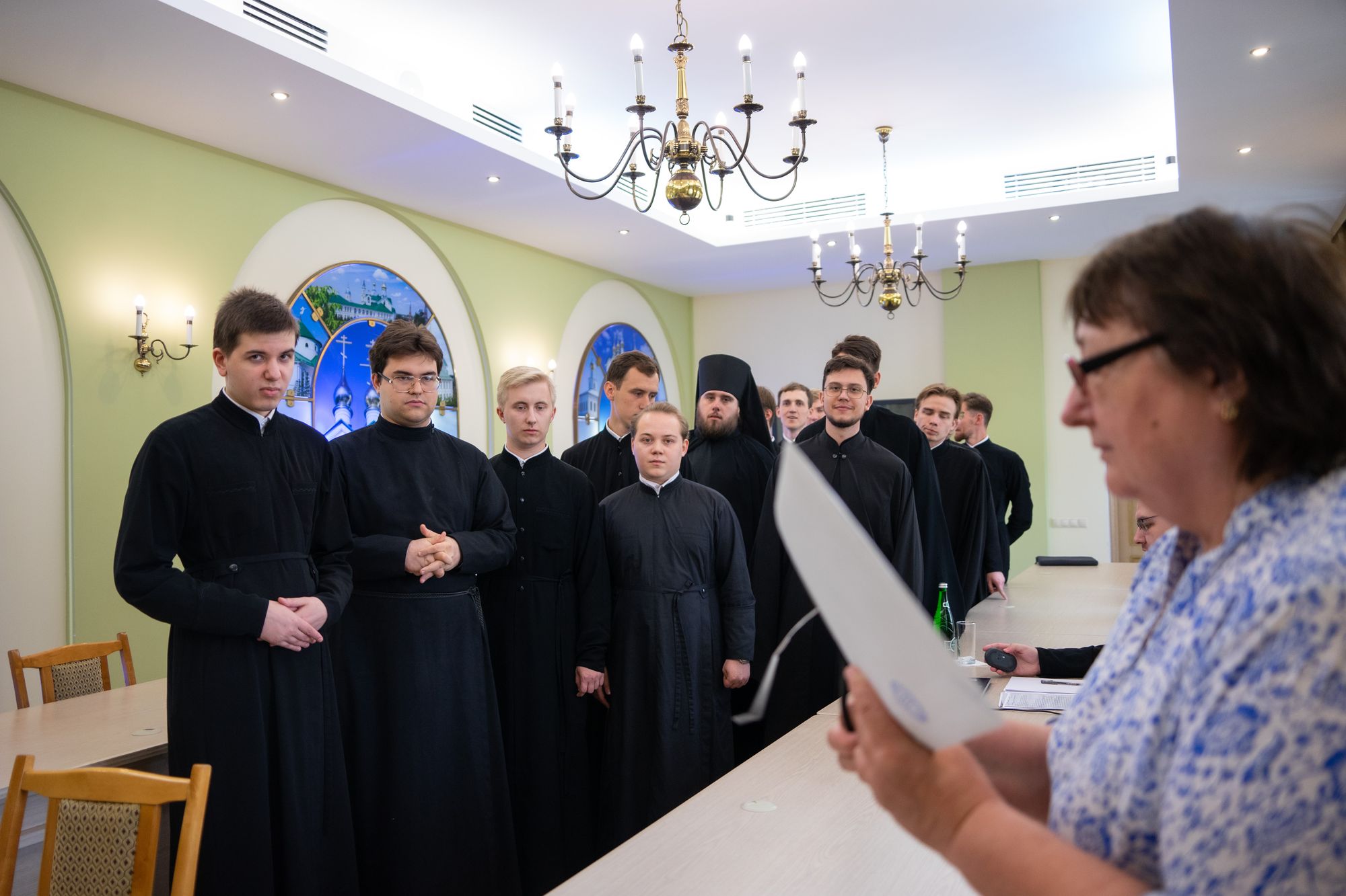 В состав комиссии вошли: ректор КДС, доктор богословия протоиерей Вадим Суворов; юрисконсульт Учебного Комитета Русской Православной Церкви, кандидат юридических наук Наталия Сергеевна Семенова; доценты и преподаватели семинарии.