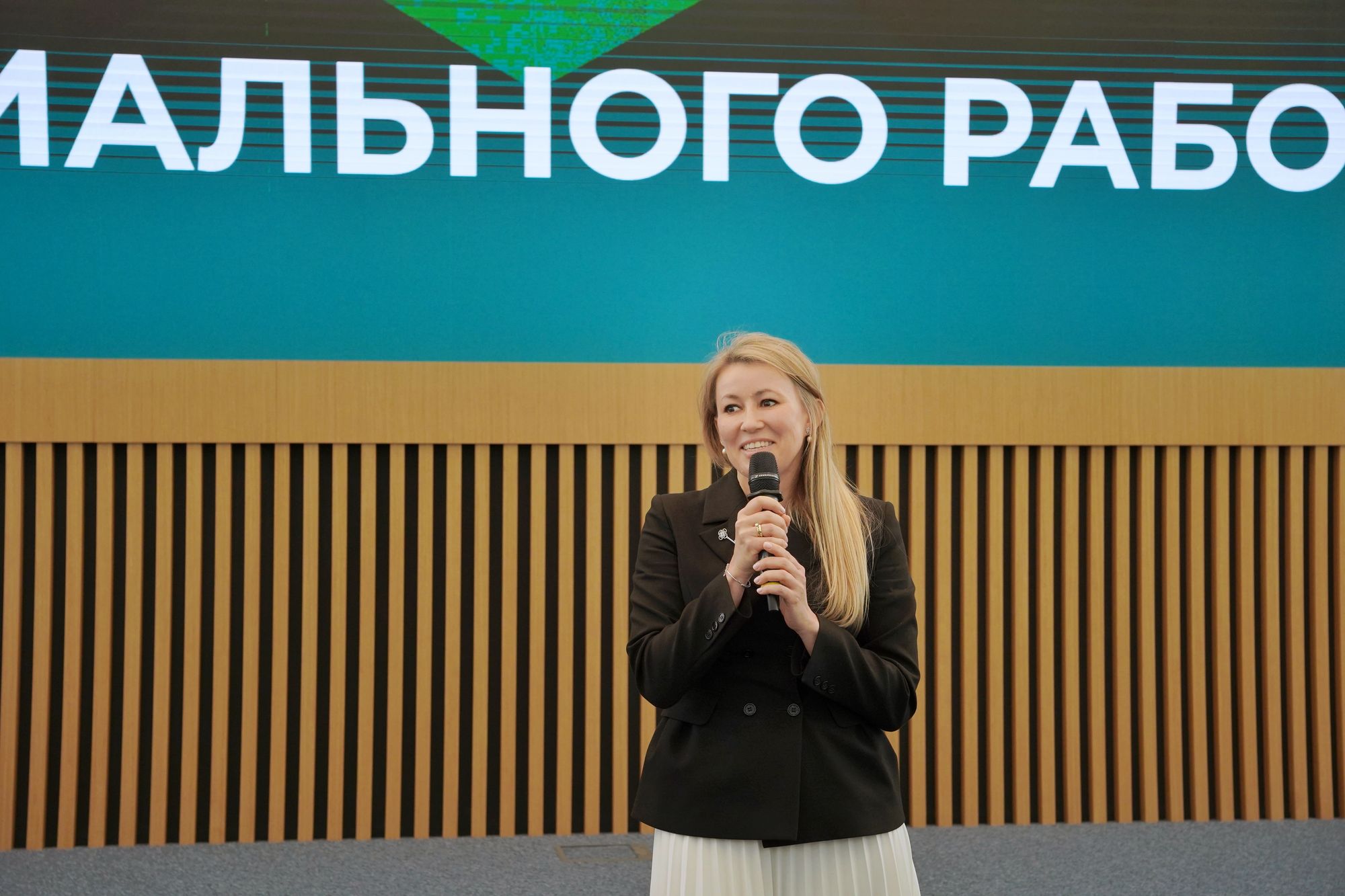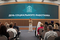 Председатель фонда «Защитники Отечества» Анна Цивилева в поздравительном слове подчеркнула схожесть деятельности социальных работников и соцкоординаторов фонда.
