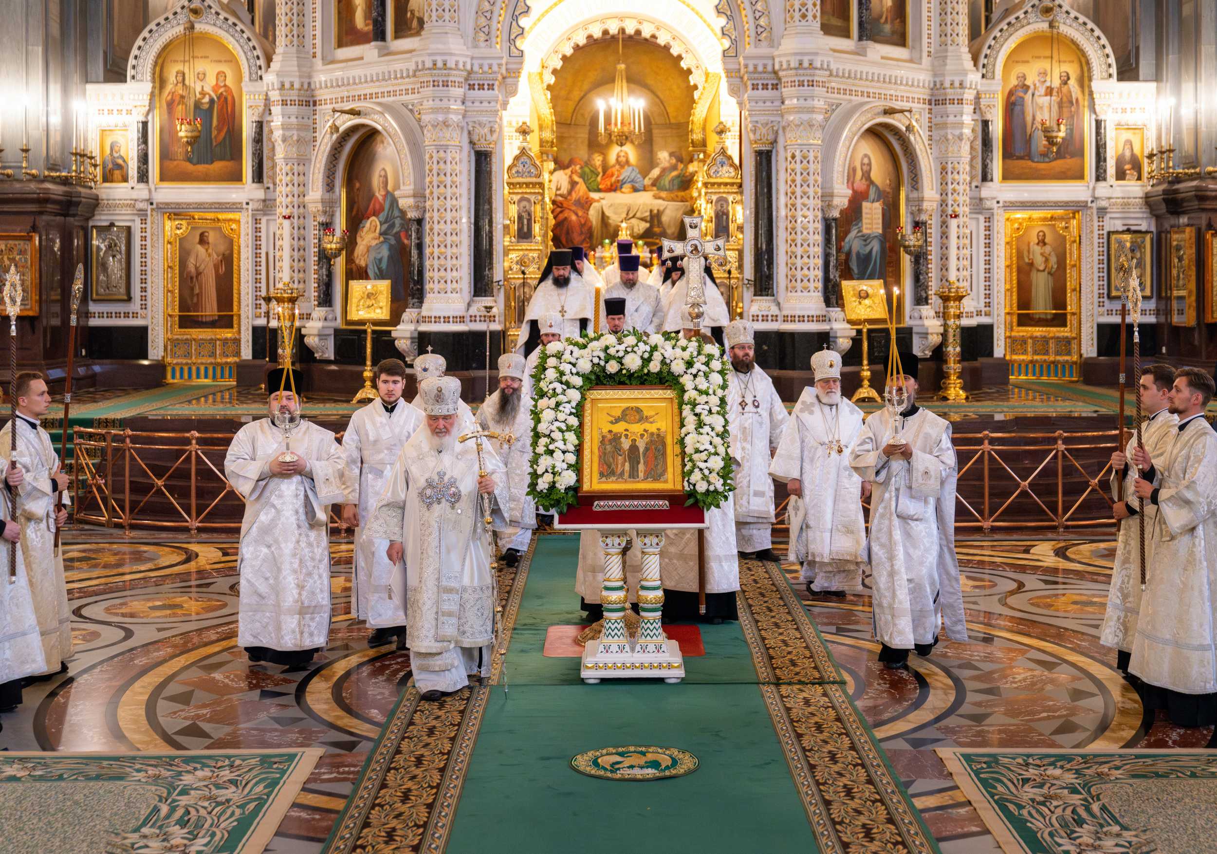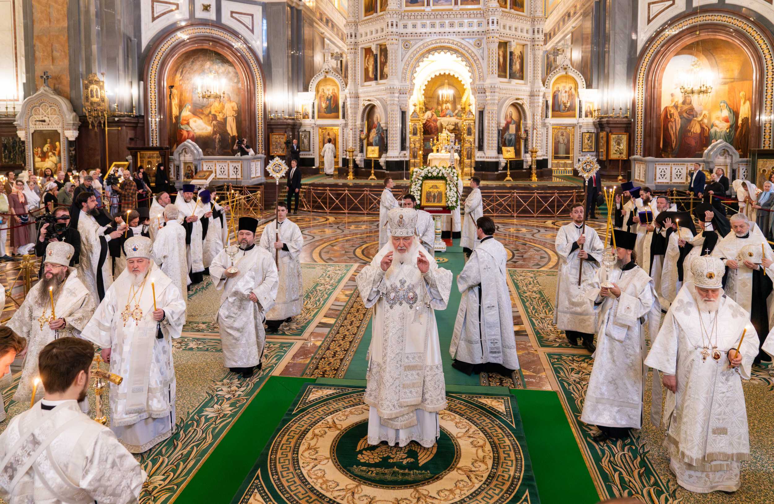 Вечером 12 июня 2024 года, в канун праздника Вознесения Господня, Святейший Патриарх Московский и всея Руси Кирилл совершил всенощное бдение в кафедральном соборном Храме Христа Спасителя г. Москвы.
