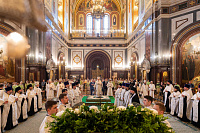 Богослужебные песнопения исполнили Патриарший хор Храма Христа Спасителя (регент — И.Б. Толкачев) и Камерный хор Храма Христа Спасителя (регент — С.С. Сидоренко).