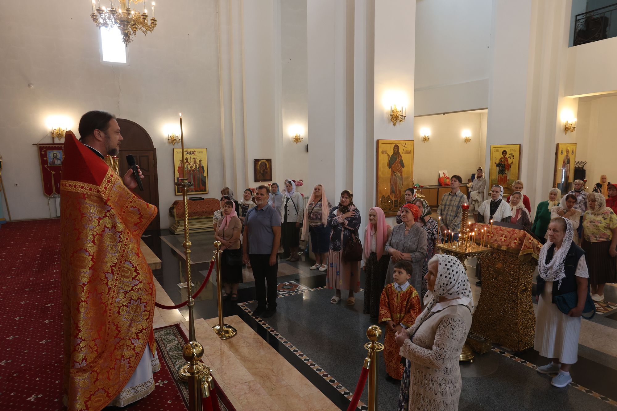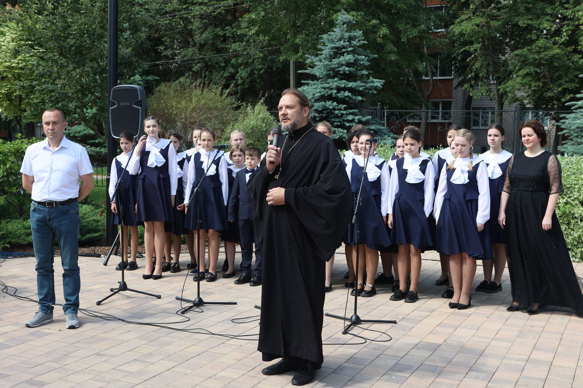 После соборного богослужения на территории Иерусалимского храма состоялся концерт «Под сенью дивных алтарей». В мероприятии приняли участие благочинный 1-го Воскресенского церковного округа протоиерей Сергий Якимов, Глава г. о. Воскресенск Малкин А. В., председатель Совета депутатов городского округа Воскресенск Матвиенко С. В., заместитель председателя Совета депутатов г. о. Воскресенск и председатель попечительского совета Иерусалимского храма Слепов С. С., председатель Совета ветеранов войны и труда, Вооруженных Сил и правоохранительных органов городского округа Воскресенск Дацюк В. Ф., клирики церковного округа, почетные граждане, прихожане.