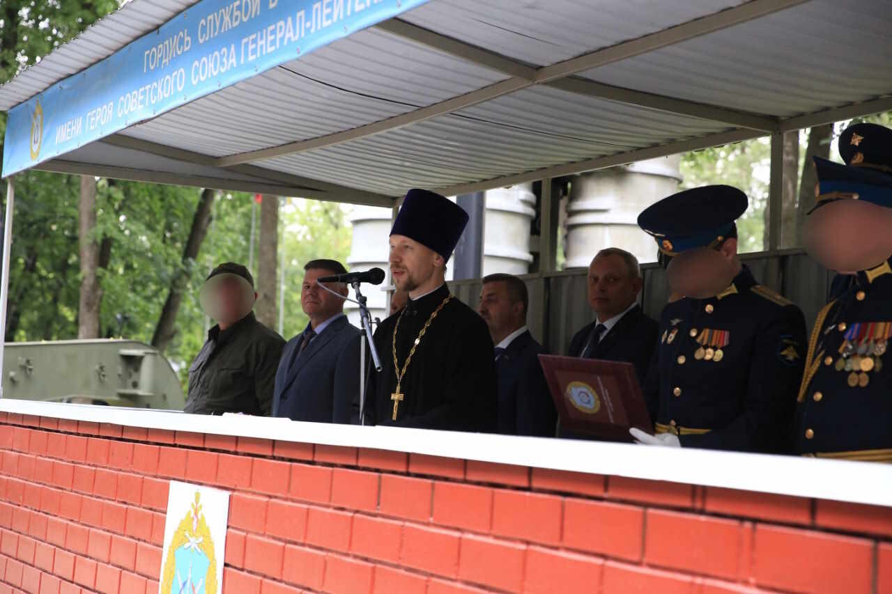 Отец Алексий обратился к собравшимся с приветственным словом, в котором поздравил личный состав войсковой части и всех военнослужащих. Священник особо отметил внимательное отношение военнослужащих соединения к ветеранам и пожелал всем Божией помощи и крепости в ратном служении.