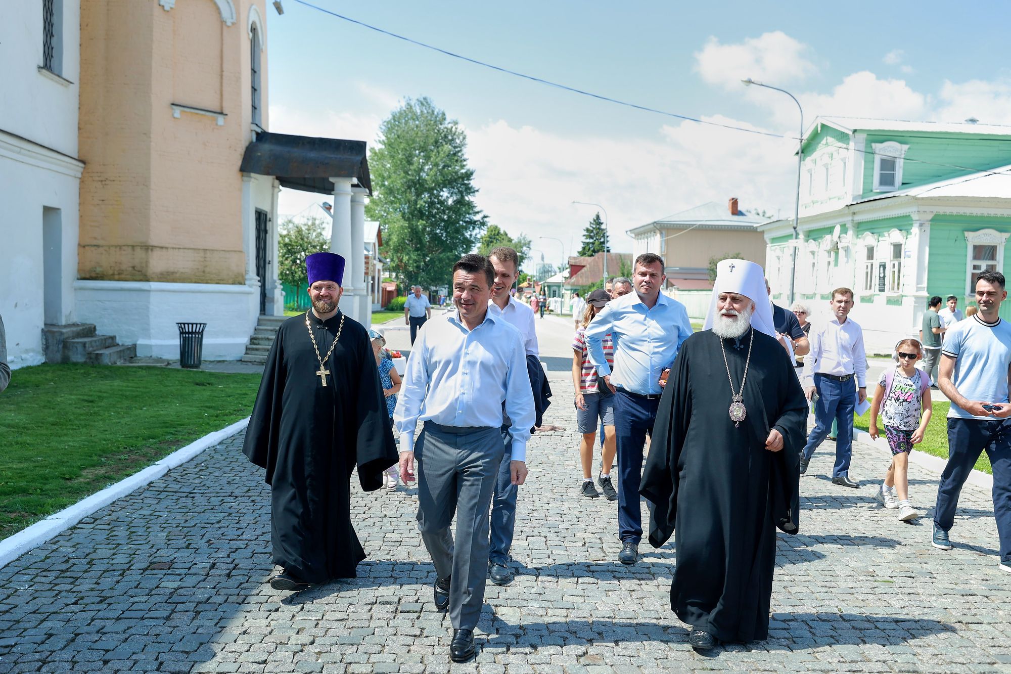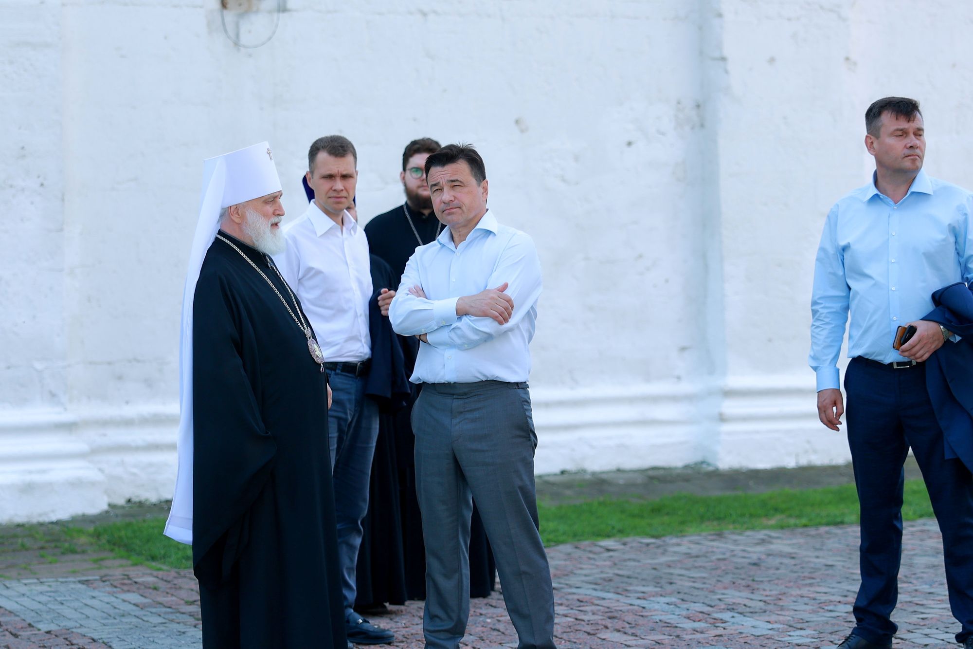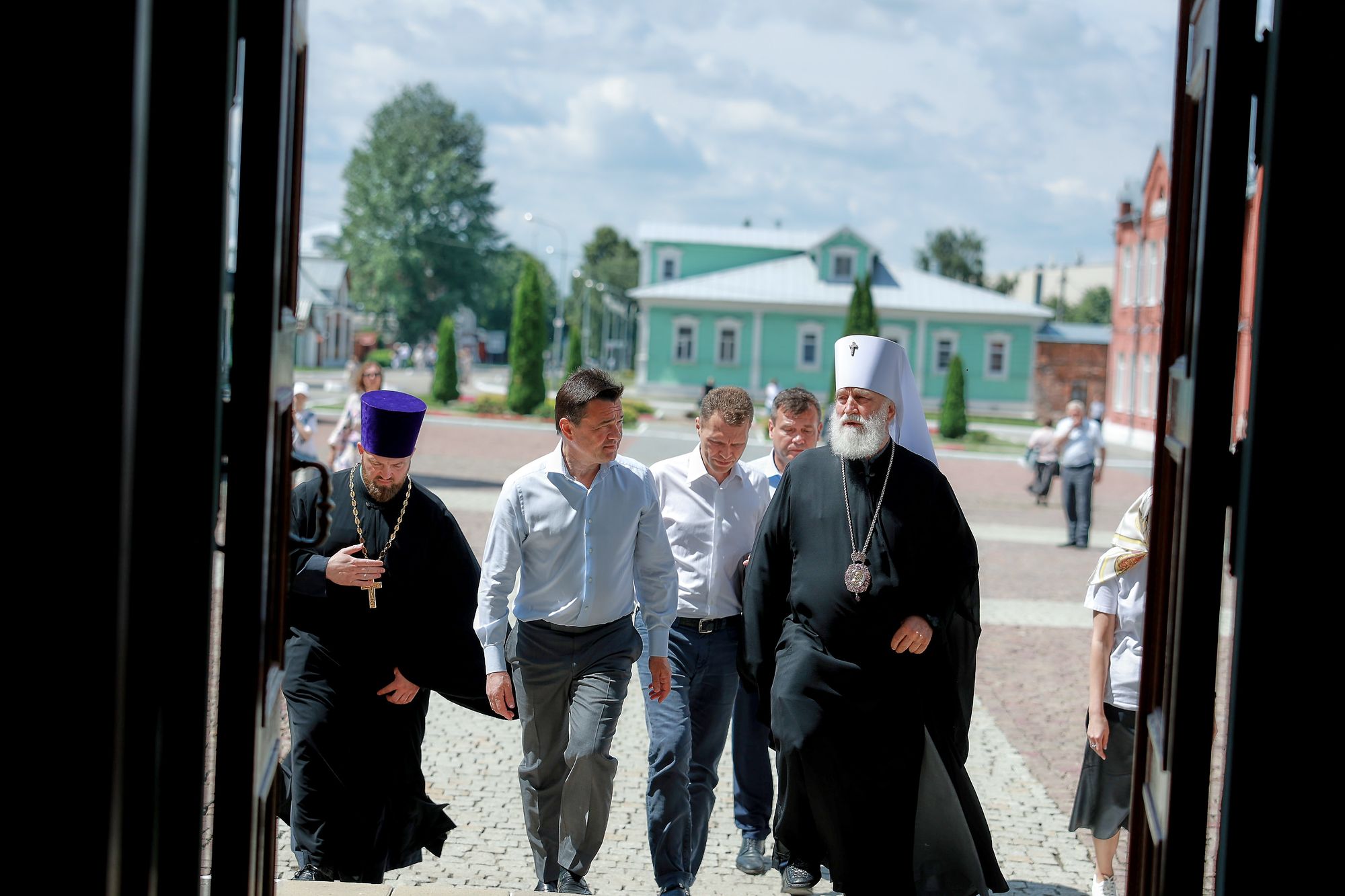После этого гости осмотрели соборную площадь и посетили Коломенское епархиальное управление, где состоялось общение Его Высокопреосвященства с Главой Подмосковья.