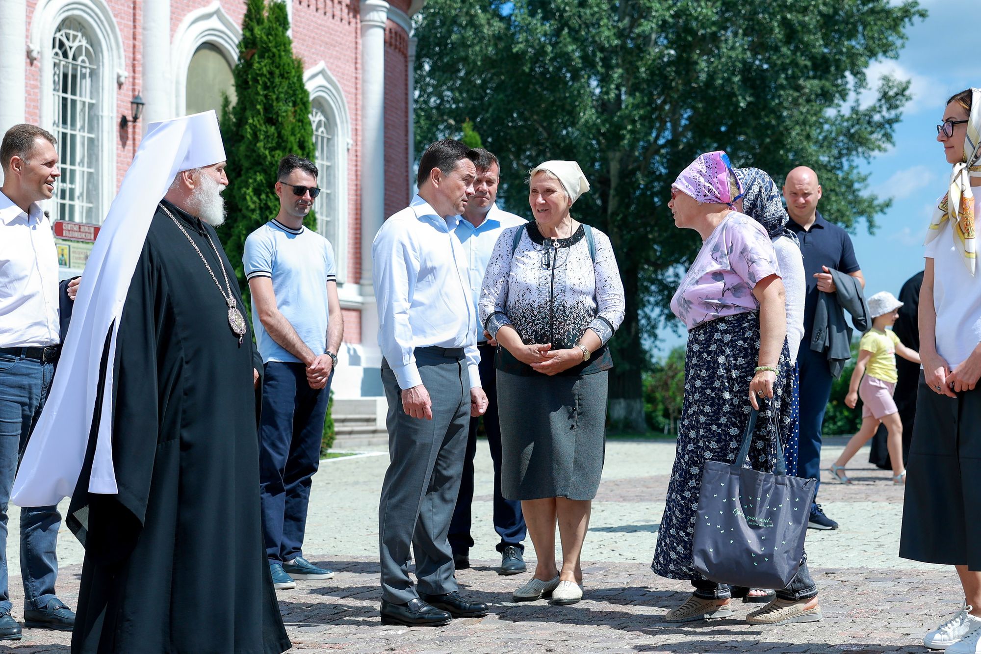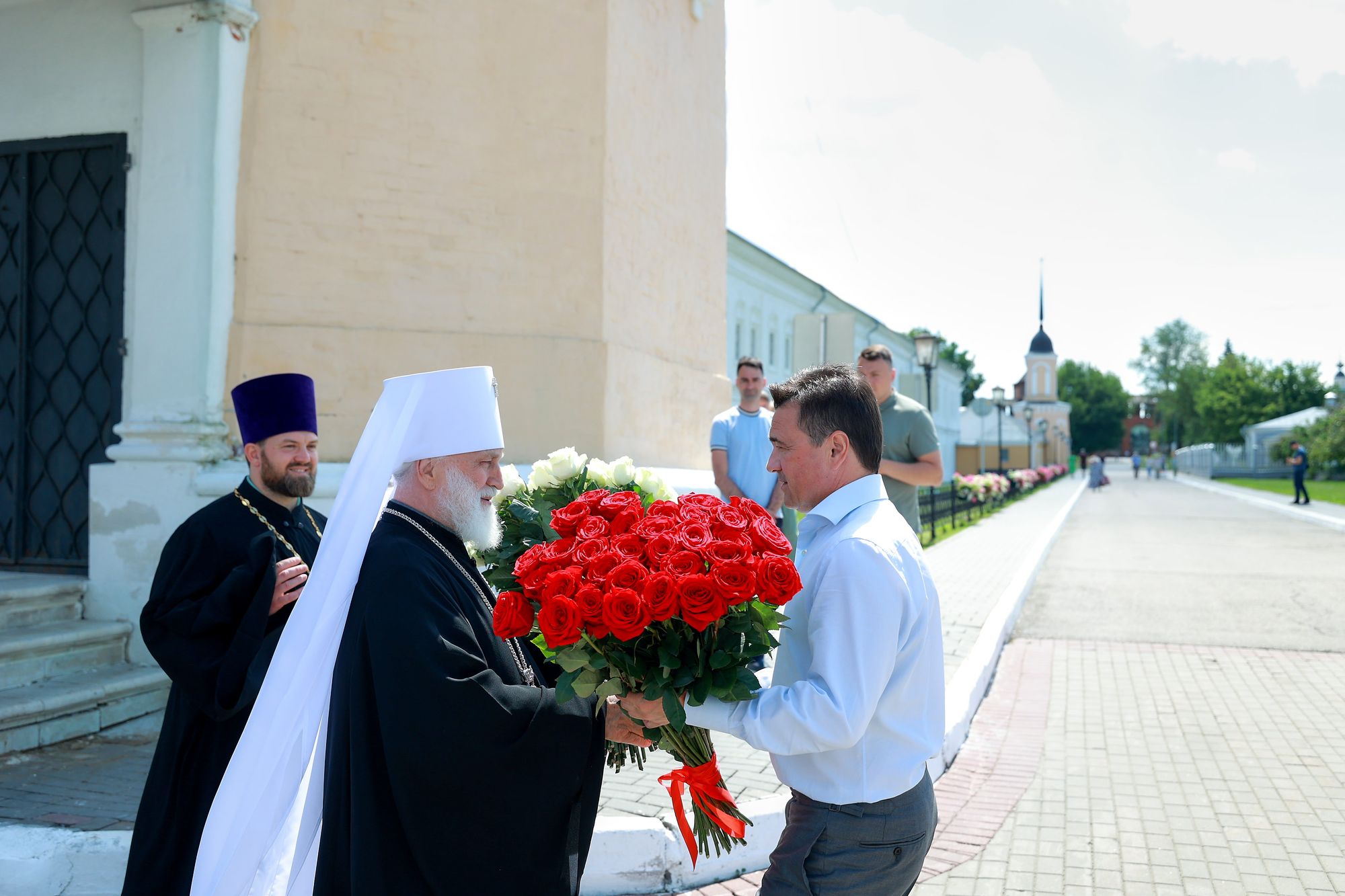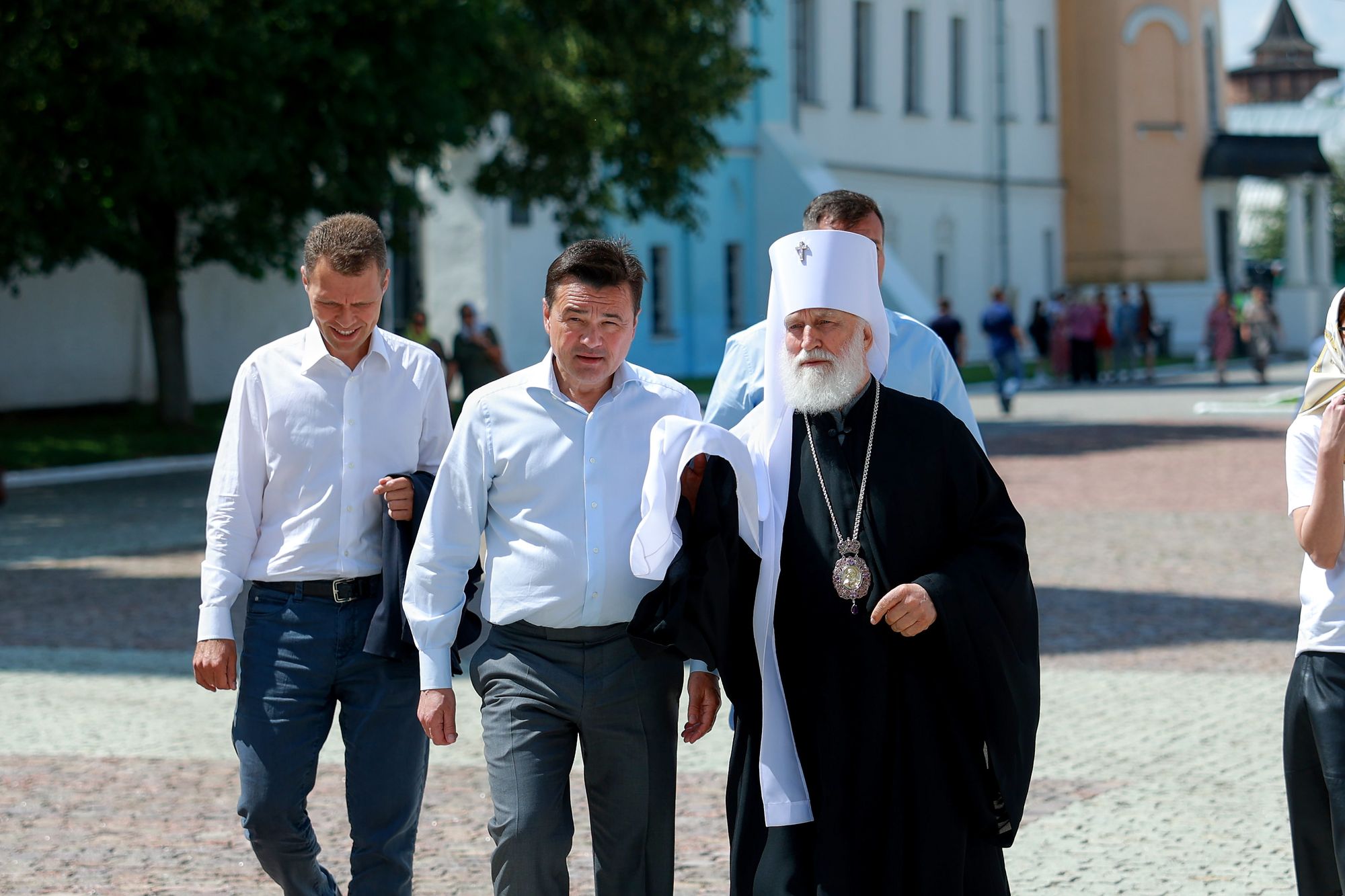 После этого гости осмотрели соборную площадь и посетили Коломенское епархиальное управление, где состоялось общение Его Высокопреосвященства с Главой Подмосковья.