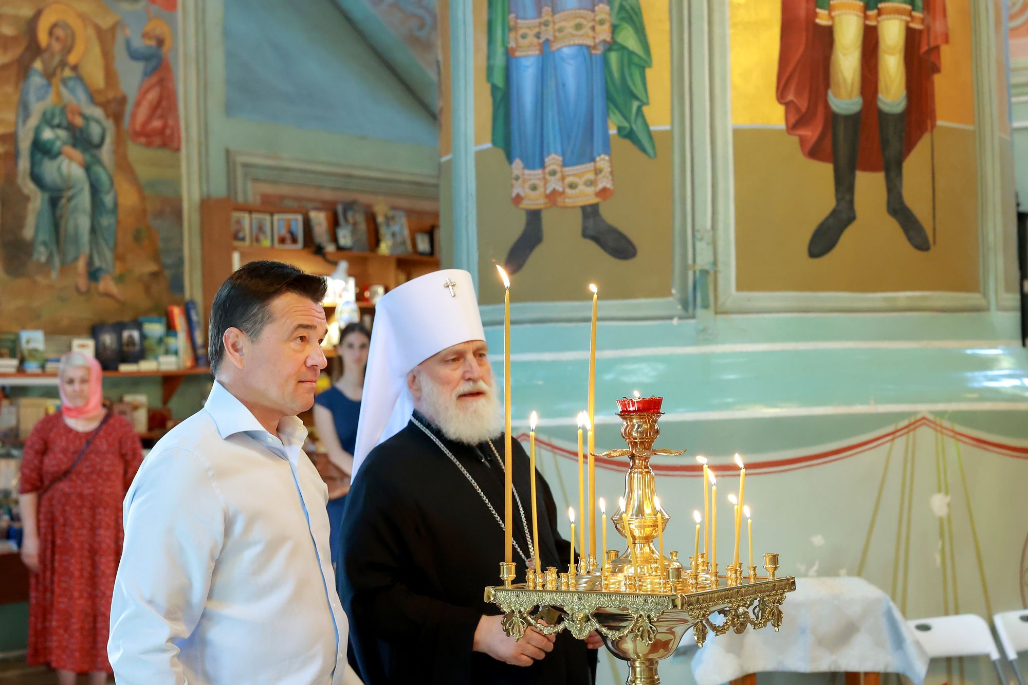 У входа на Соборную площадь высоких гостей встретил Патриарший наместник Московской митрополии митрополит Крутицкий и Коломенский Павел, после чего делегация проследовала в Успенский кафедральный собор, где Андрей Юрьевич помолился у Донской иконы Пресвятой Богородицы.