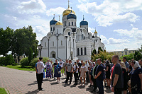 В сопровождении помощника начальника ГУФСИН по организации работы с верующими, председателя Межъепархиального отдела по тюремному служению Московской митрополии священника Михаила Куземки сотрудники ведомства ознакомились с историей основания монастыря и историей его возрождения после советского времени, посетили его храмы и соборы, смогли поклониться святыням, расположенным в обители.