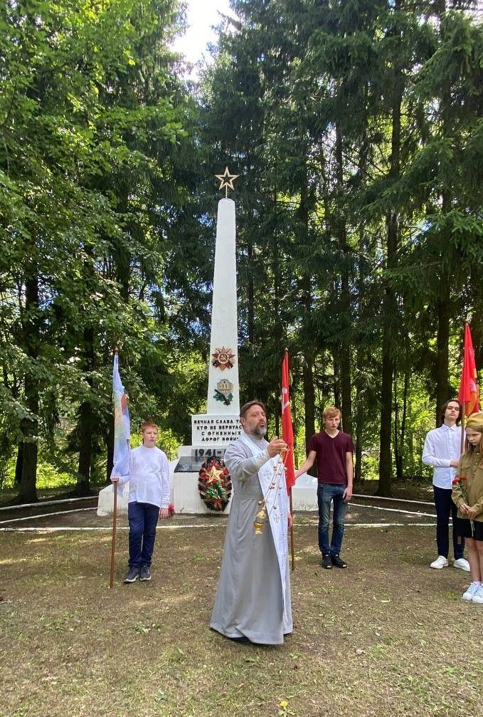 22 июня в Знаменском храме д. Алёшино настоятель храма иерей Роман Теребилкин совершил Божественную Литургию и панихиду в память всех от века усопших благочестивых христиан, отец и братий наших. По окончании богослужения учащиеся молодёжного клуба "Скрижаль" и взрослой воскресной школы при Знаменском храме д. Алёшино вместе с отцом Романом и прихожанами приняли участие в памятной акции, приуроченной к 83-й годовщине начала Великой Отечественной войны. Акция состоялась у памятника погибшим землякам в д. Кудиновская. "Скрижальцы" исполнили музыкально-литературную композицию "Журавли". А затем отец Роман совершил заупокойную литию, на которой все собравшиеся молитвенно почтили память земляков, погибших в годы войны за Родину.