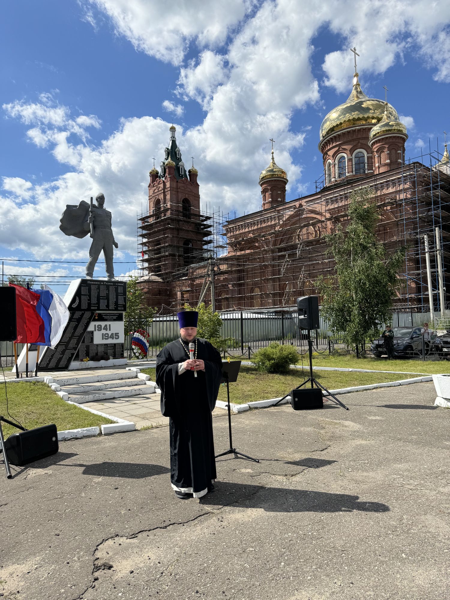 Благочинные 1-го и 2-го Егорьевских церковных округов, протоиерей Сергий Кожевников и иерей Сергий Ершов, приняли участие в городском митинге, посвященному 22 июня, у памятника неизвестному солдату и возложили к памятнику цветы.
