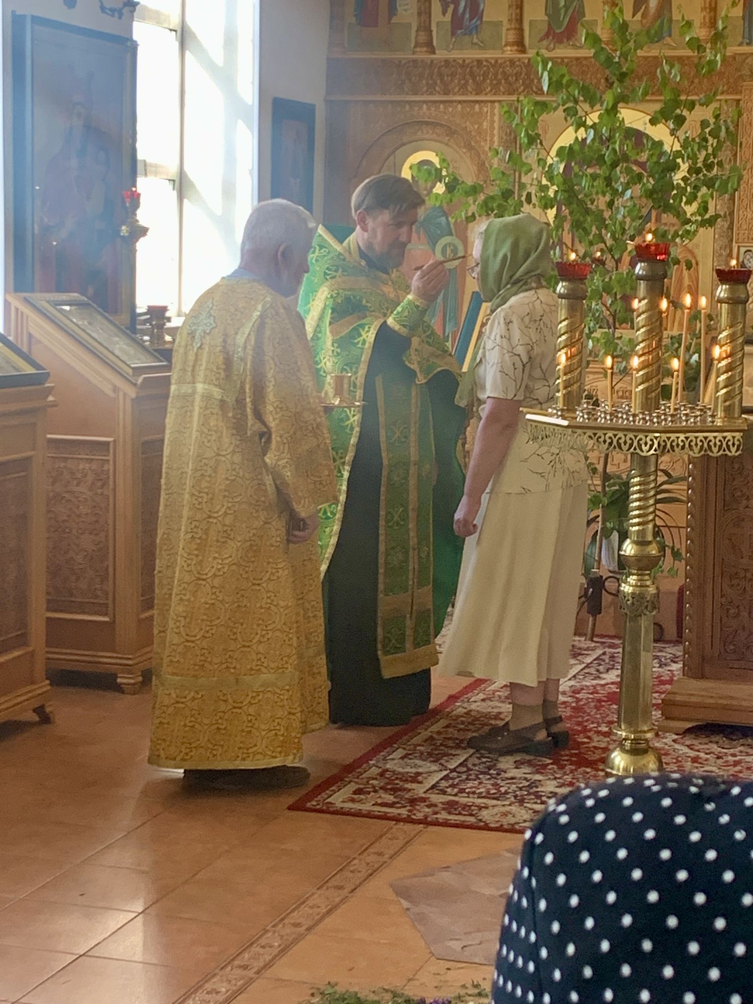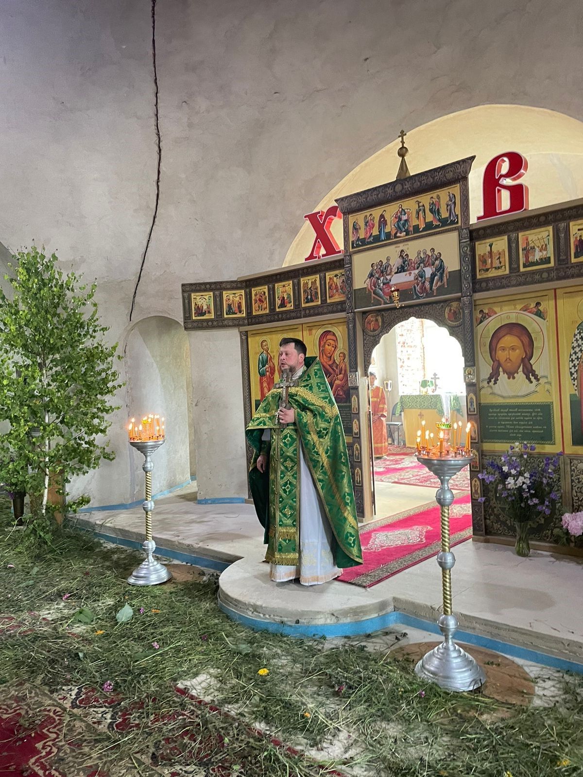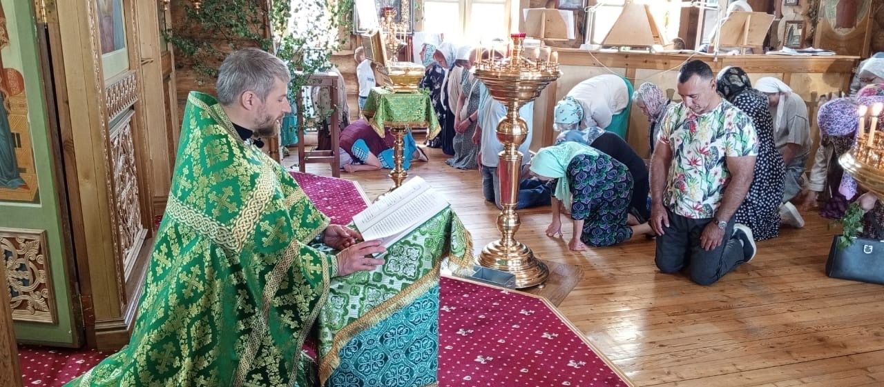 23 июня в день Святой Троицы в Никольском храме д. Большое Гридино настоятель храма совершил Литургию и Вечерню с коленопреклонением.