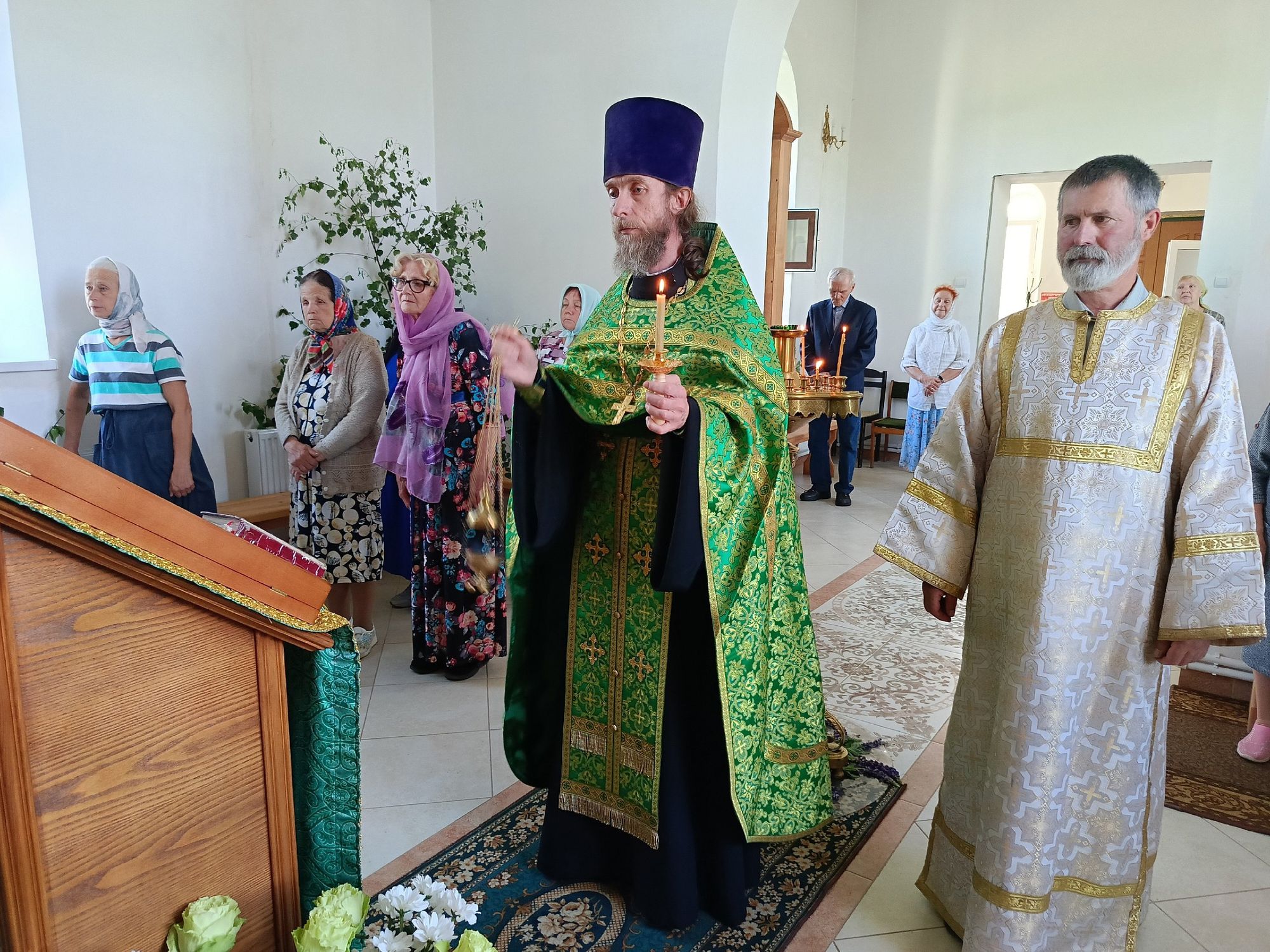 23 июня в праздник Святой Троицы, Пятидесятницы в Казанском храме д. Гридино была совершена Божественная Литургия с присоединением Вечерней с коленопреклонными молитвами.