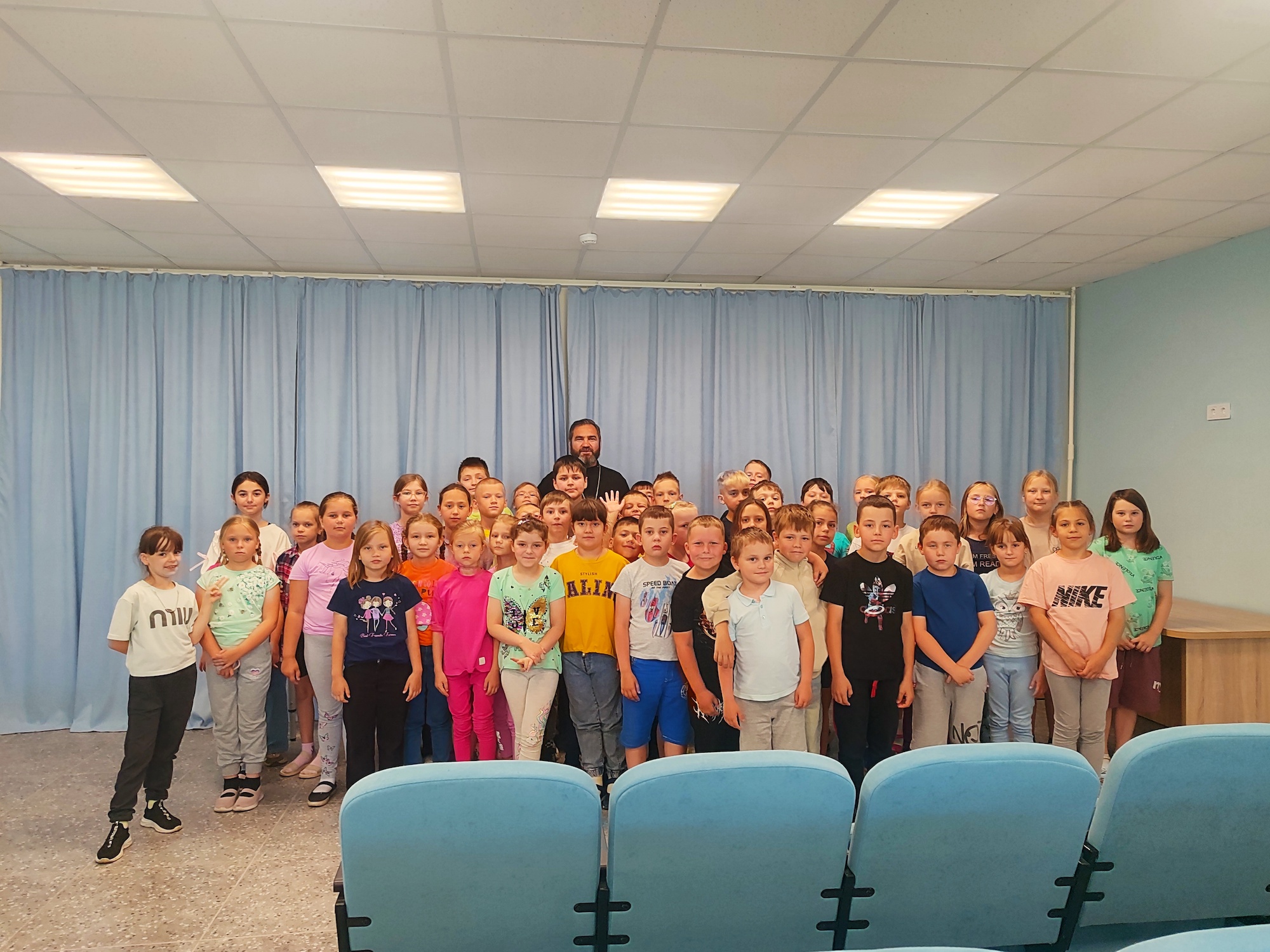 25 июня ответственный в Серебряно-Прудском благочинии за церковную благотворительность и социальное служение, настоятель Успенского храма поселка Успенский иерей Владимир Шубин встретился с ребятами, отдыхающими в летнем лагере при средней школе № 1 имени дважды Героя Советского Союза маршала В. И Чуйкова поселка Серебряные Пруды.