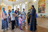 Гости познакомились с историей храма, значением праздника Святой Троицы, послушали рассказ о значении икон и церковной свечи.