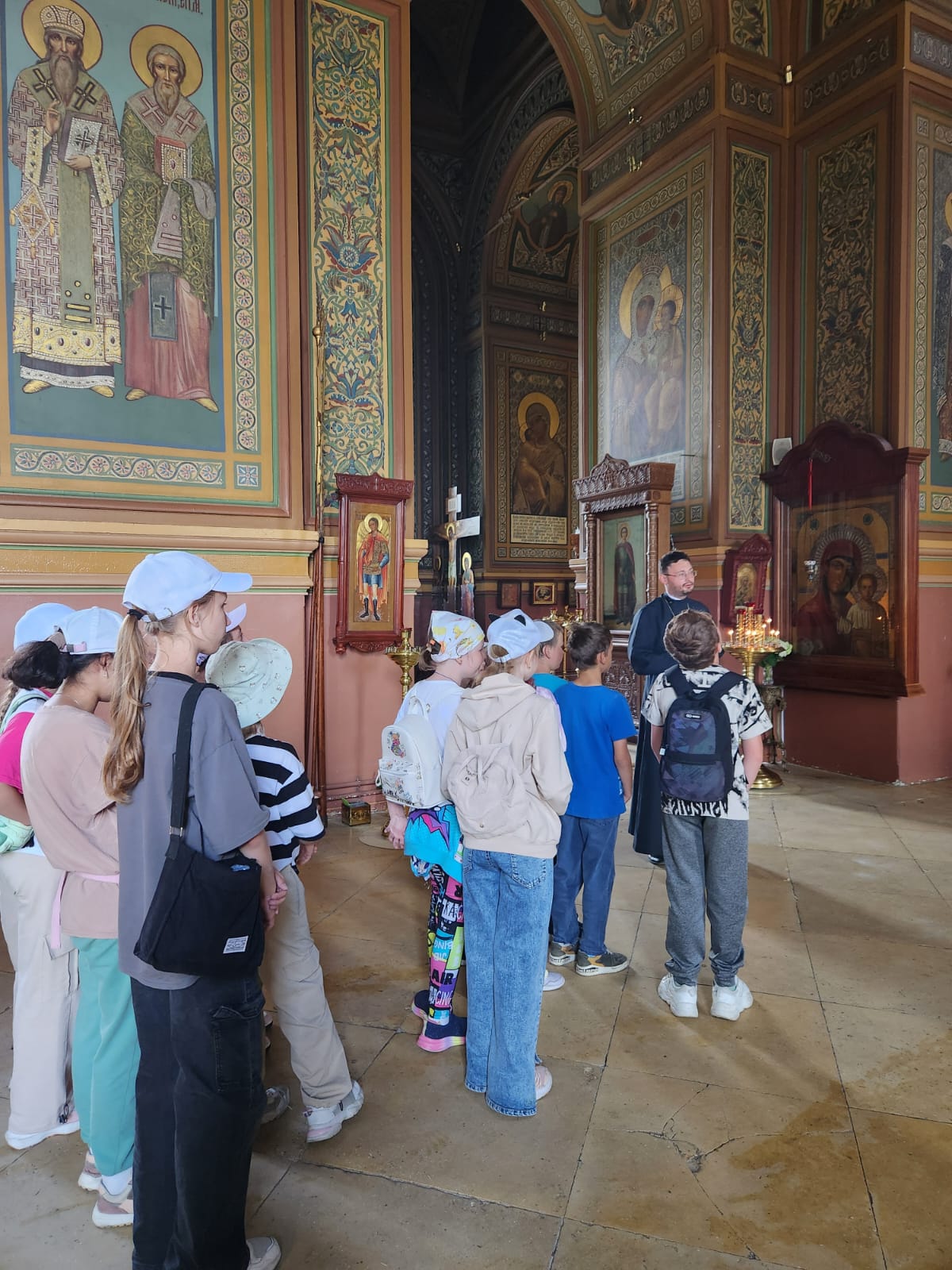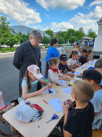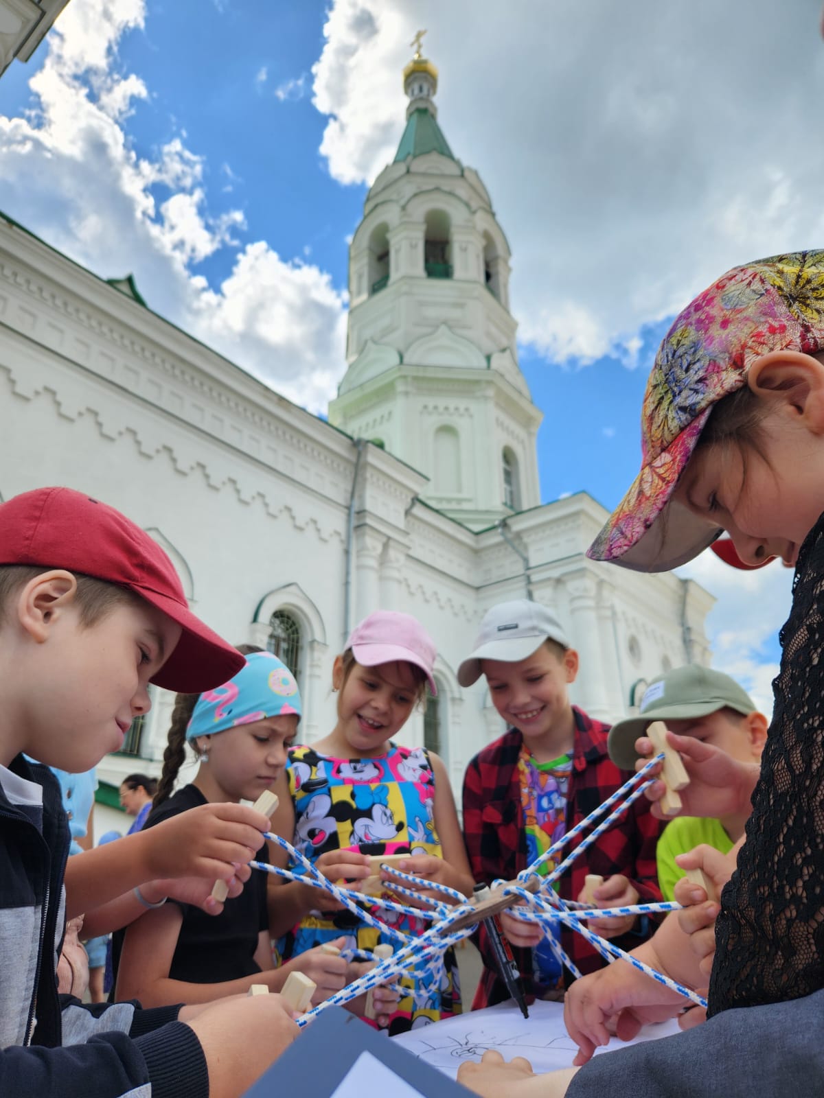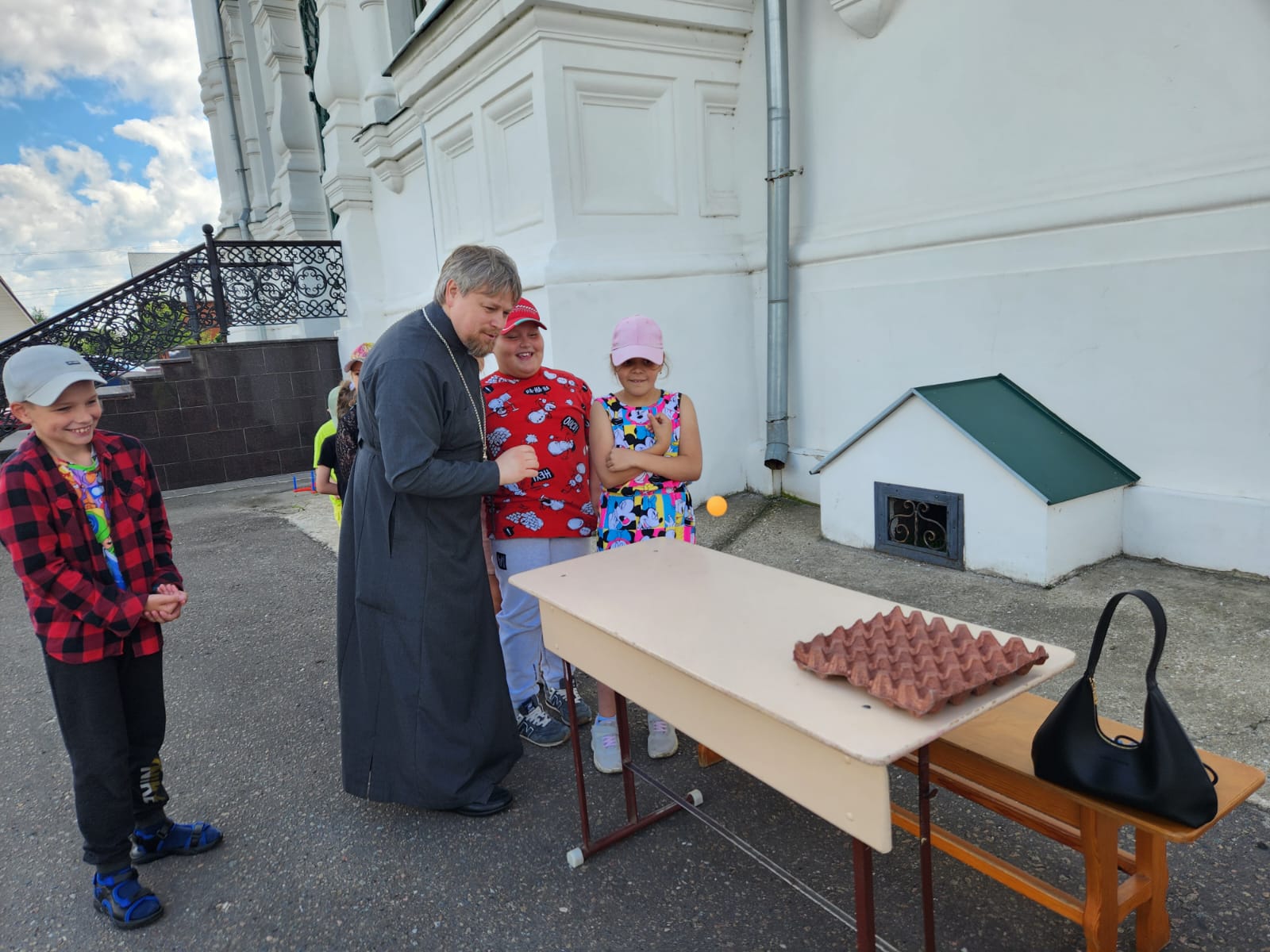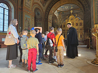 27 июня, в рамках взаимодействия Комитета по образованию с 1-м Егорьевским благочинием, для детей из лагеря с дневным пребыванием «Солнышко» при МБОУ СОШ № 15 на территории Александро-Невского храма была организована работа нескольких тематических площадок и творческий мастер-класс. Иерей Димитрий Соловьев и иерей Никита Чернышов ознакомили ребят с историей и устройством храма.
