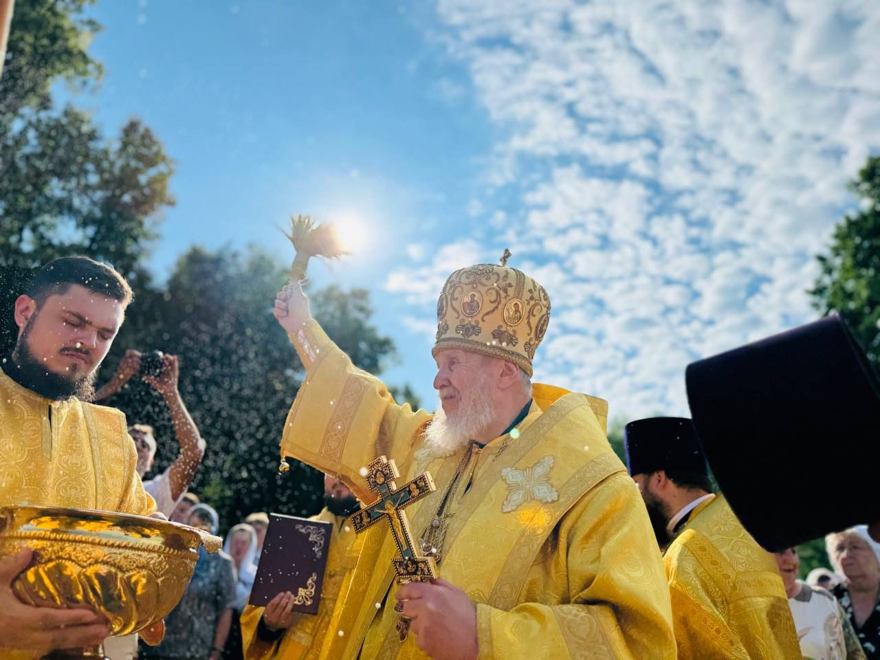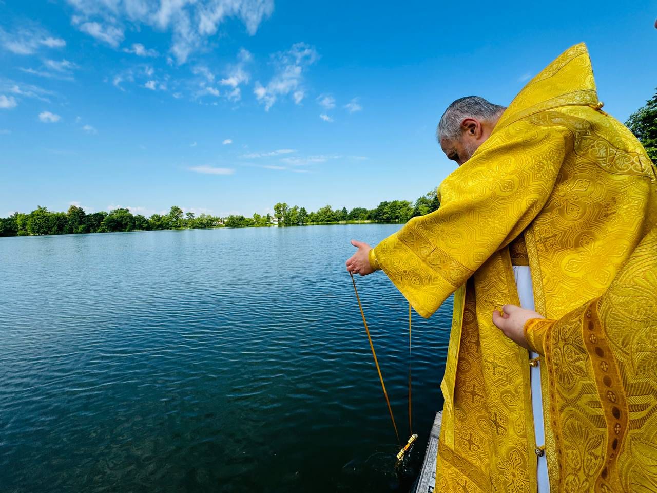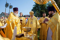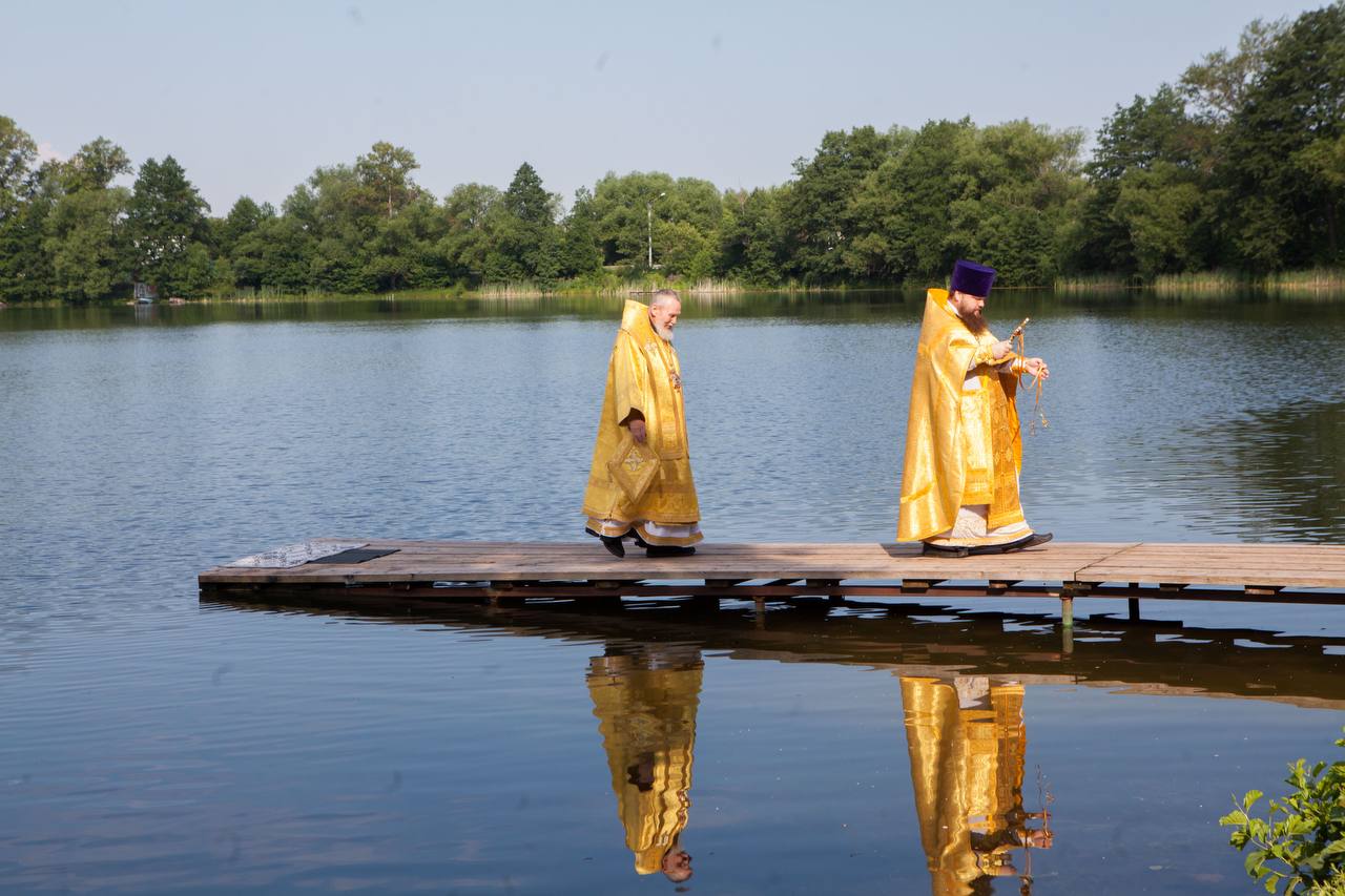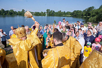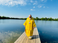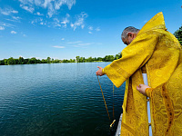 По окончании Литургии были совершены уставной крестный ход и освящение воды на Данилищевом озере, расположенном рядом с храмом.