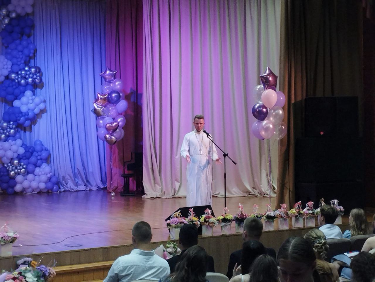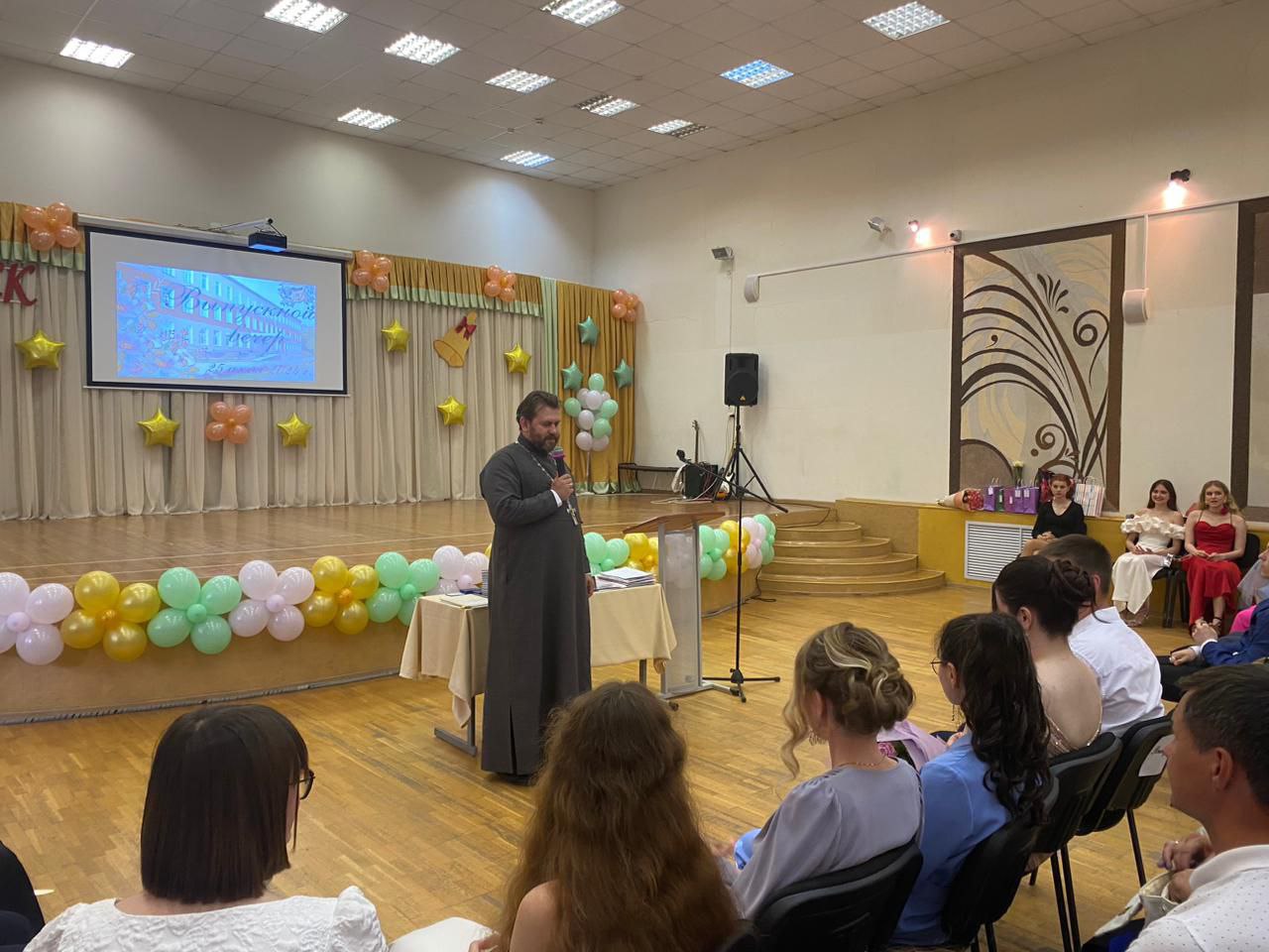 Священнослужители обратились со словами поздравления и напутствия к выпускникам, педагогам, родителям и другим участникам торжеств.