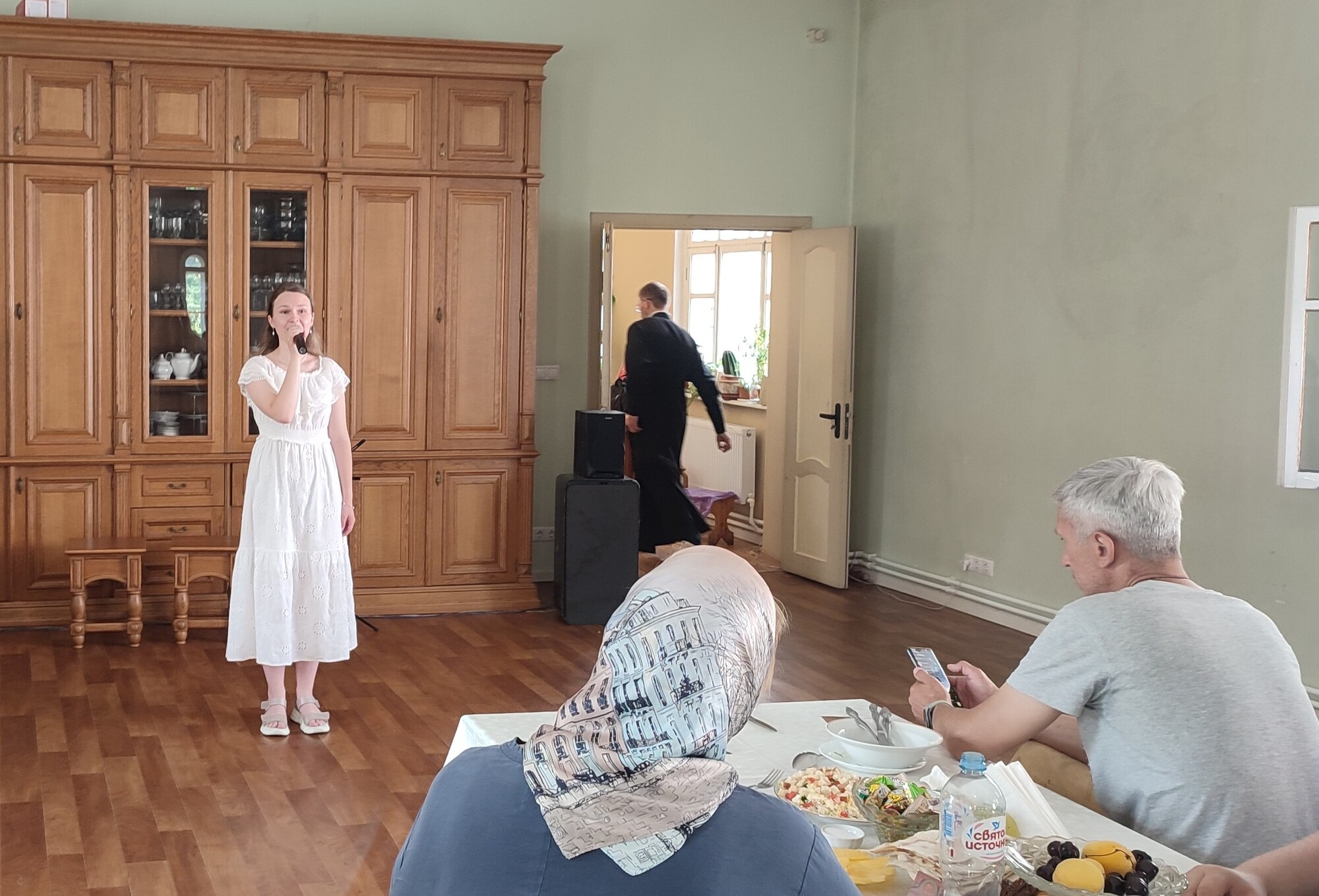 Военнослужащие исповедовались и причастились за Божественной литургией. Затем состоялась трапеза с концертом, организованного силами прихода, беседа с солдатами. Настоятель рассказал историю восстановления храма.
